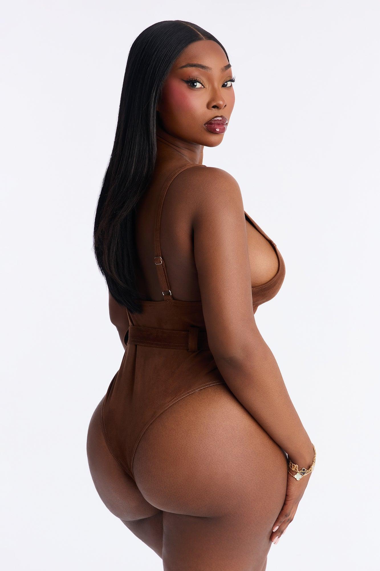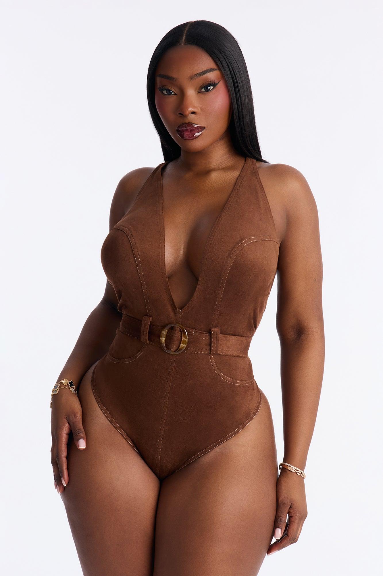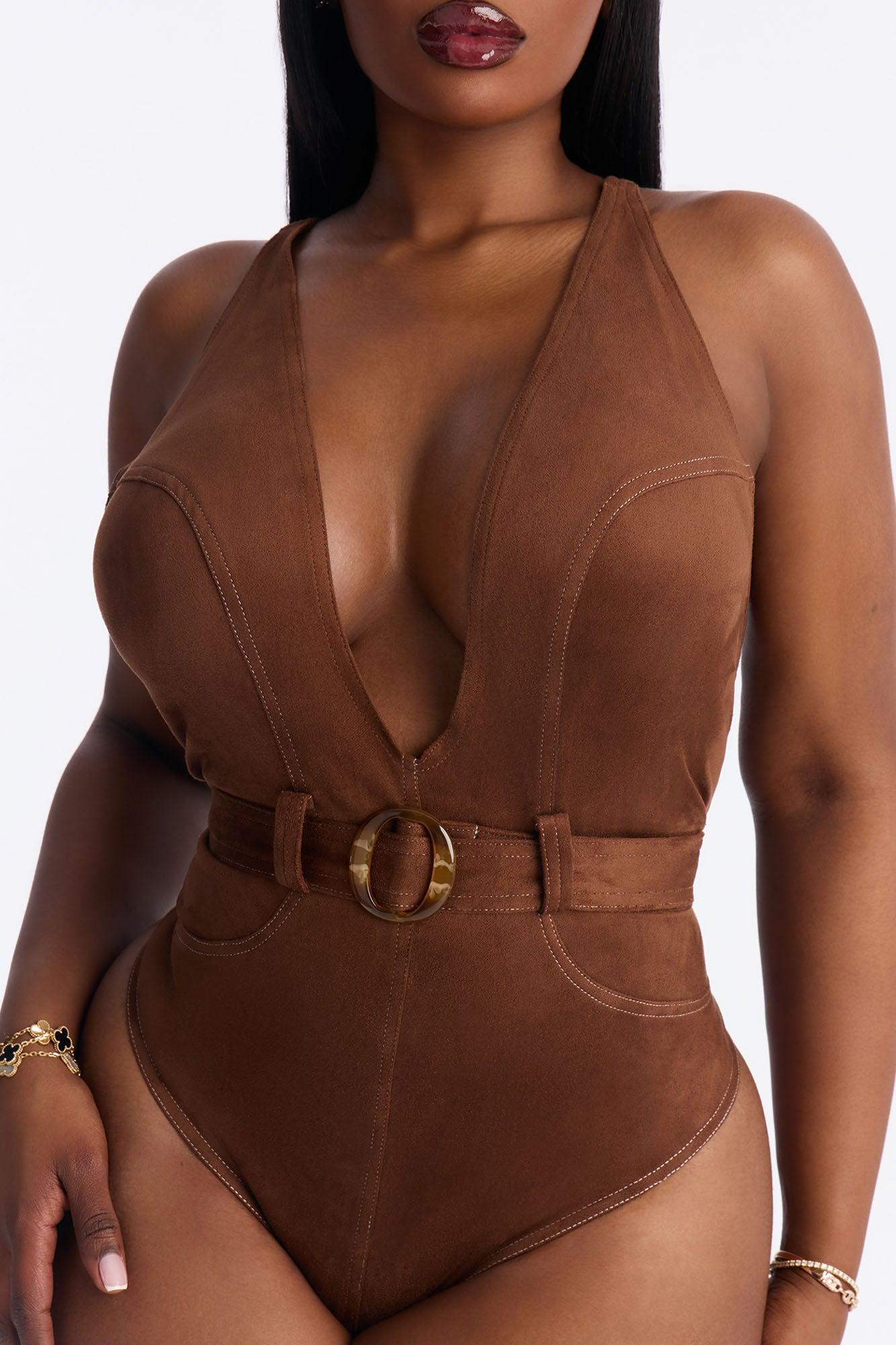 Hailey Faux Suede Belted Bodysuit - Brown Female