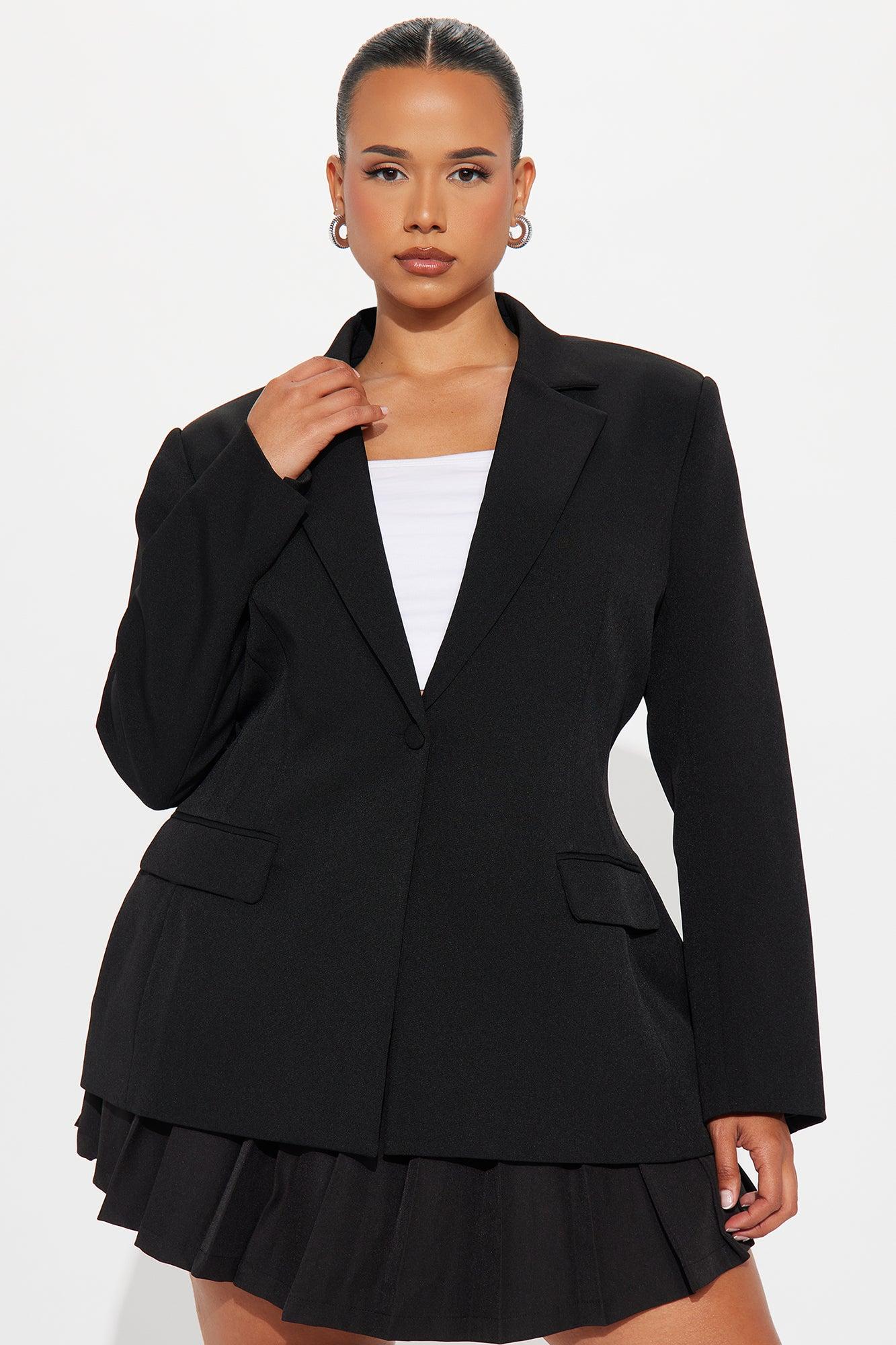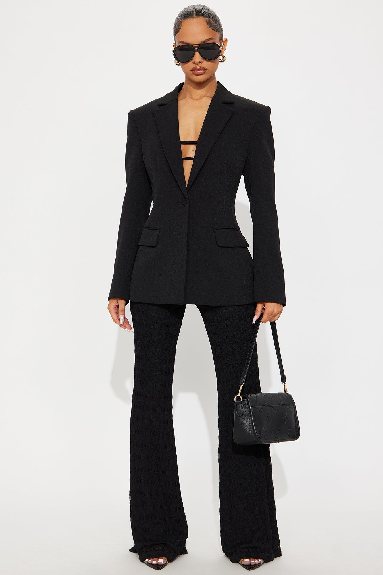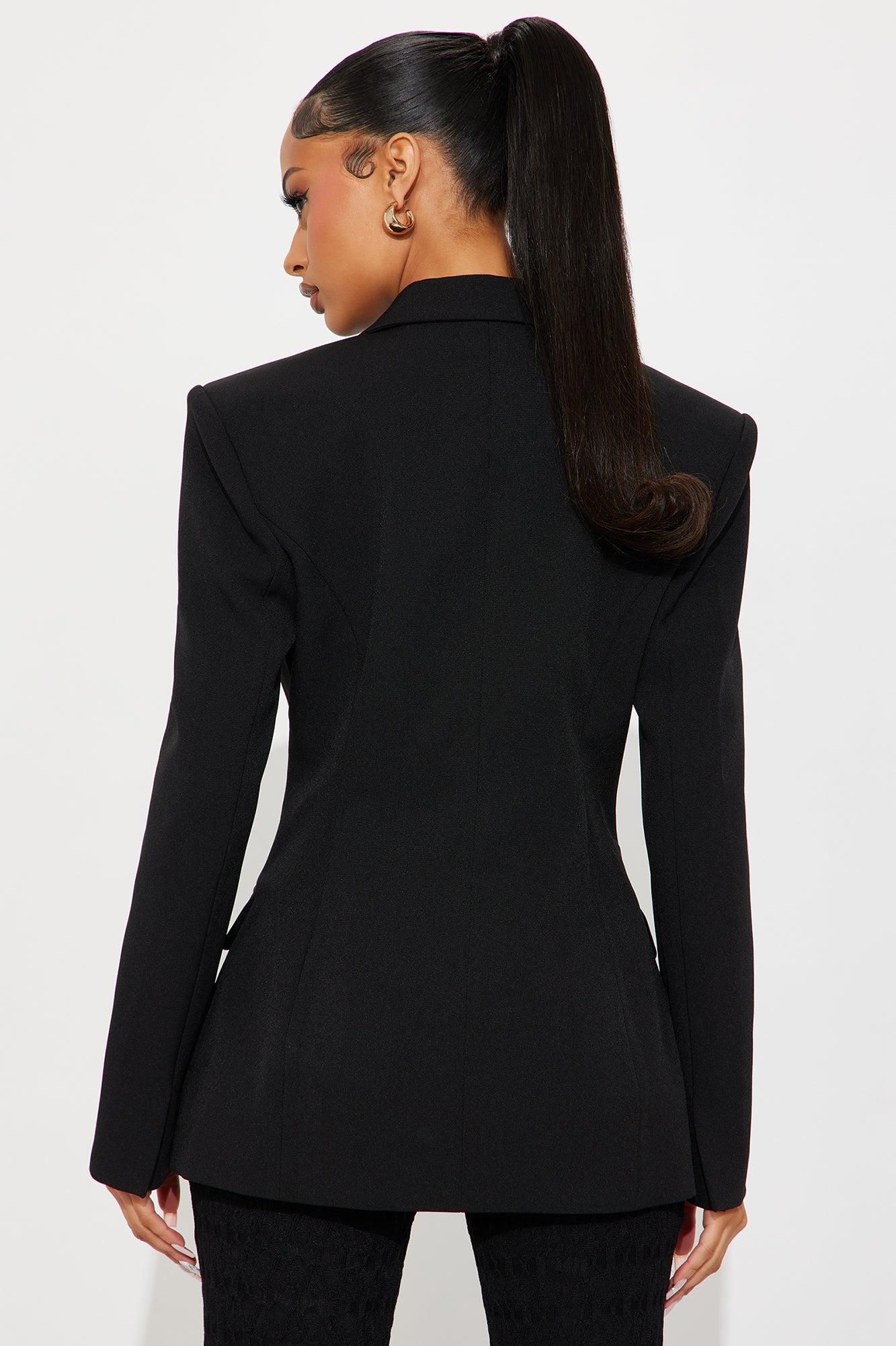 Available In Black, Cream, Mocha And Navy. Blazer Lapel Collar Long Sleeve Crepe Woven Button Closure Length 28" Fully Lined Self:98%Polyester 2%Spandex Lining:100%Polyester Imported