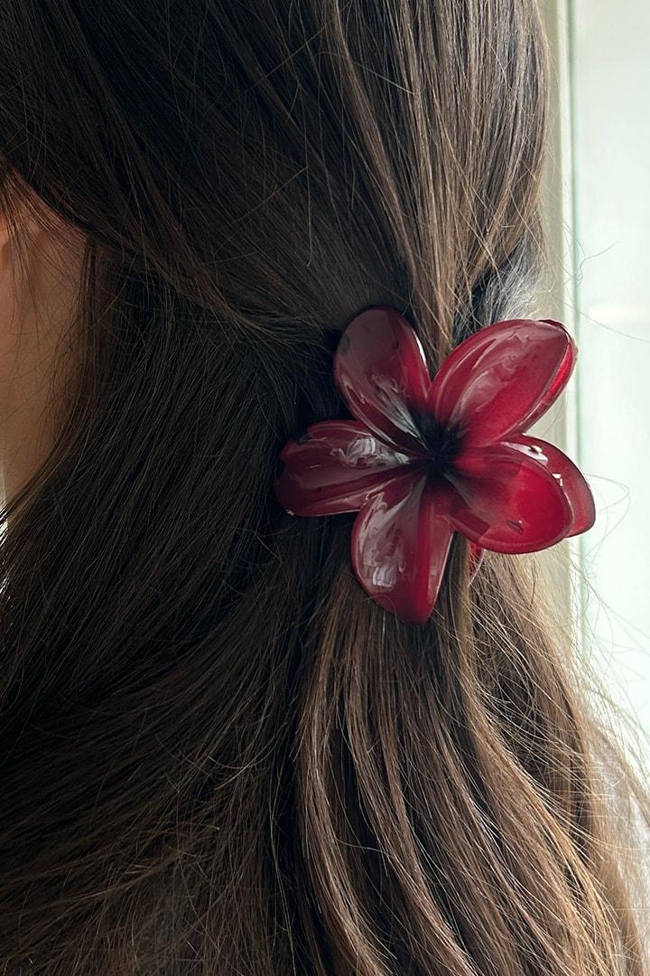 1928 Silver Tone Crystal Flower Clip-On Earrings, Womens, Red