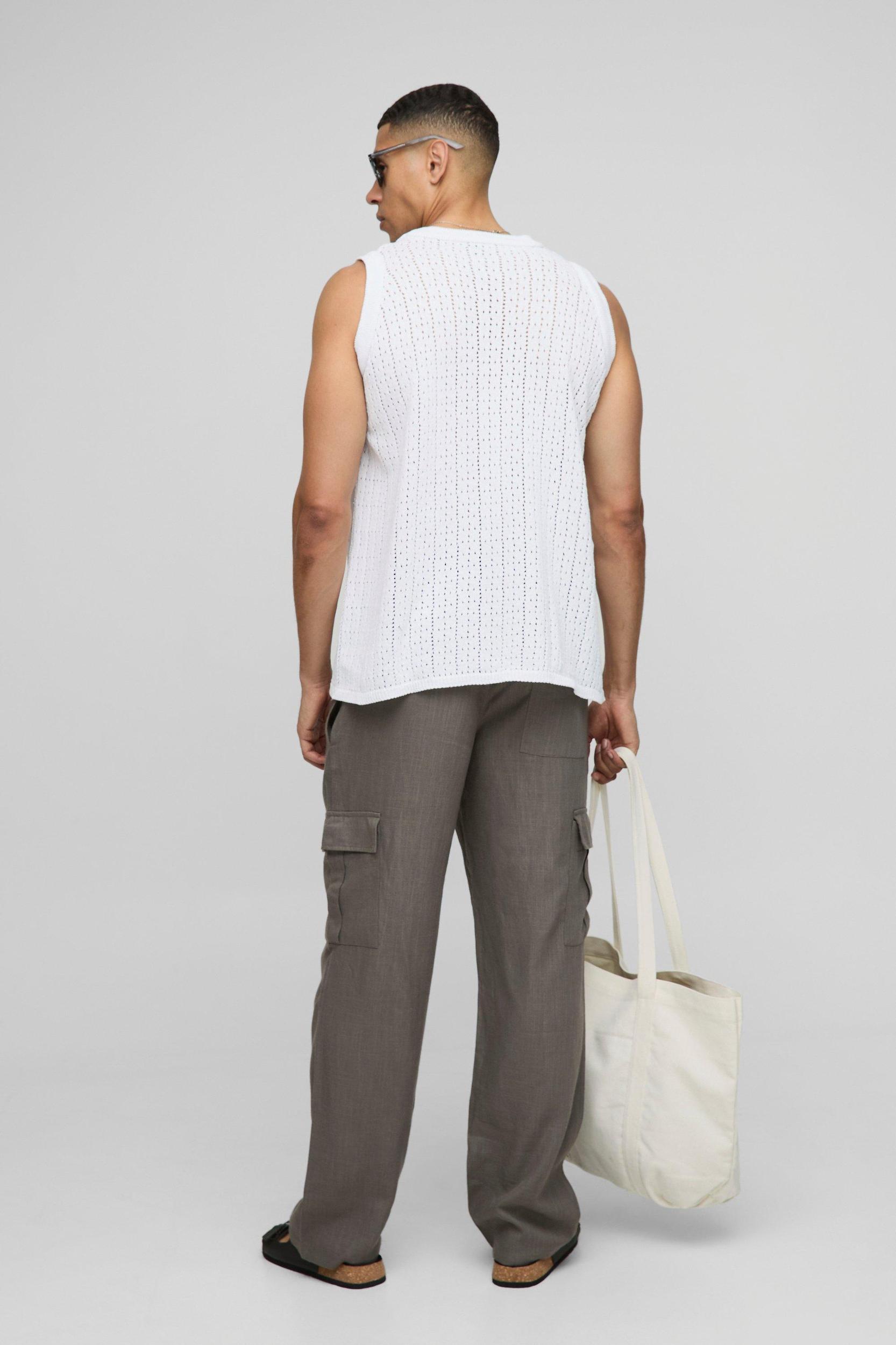 Keep your look on point with cargo. If you wanna switch up your look this season then we know you're gonna love our edit of men's cargo pants. Whether you're heading off to day drinks with your mates or simply need an everyday 'fit for running your errands, we've got the perfect vibe for you. Choose denim cargo pants for a day to night look or formal occasions, and complete your seriously fire new 'fit with a crisp shirt and your favourite pair of sneakers. Is date night on the cards? Showcase your style in a pair of slim fit cargo pants, or camo cargo pants teamed with an Style: Cargo TrousersDesign: Fabric InterestFabric: LinenDetail: PlainLength: Regular