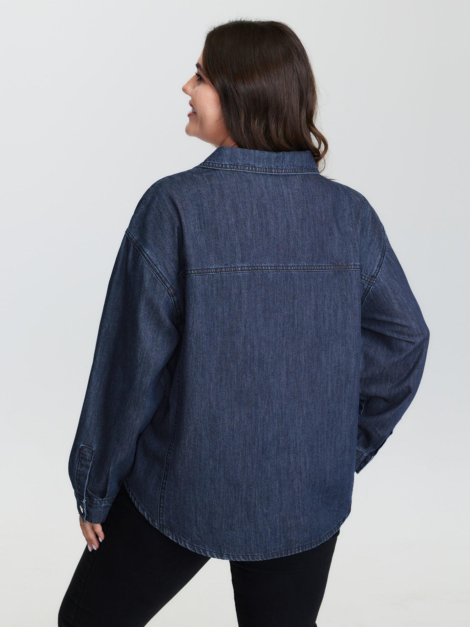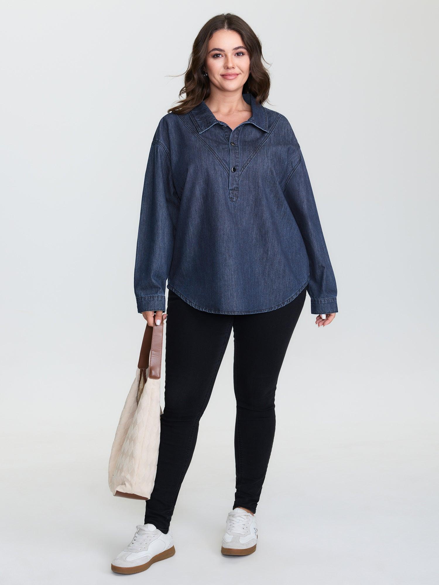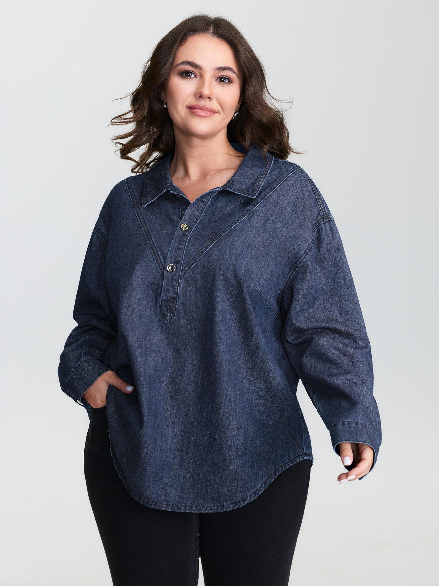 Shop Half Placket Button Curvy Hem Denim Shirt now and redefine your style with confidence at BloomChic. Tailored for mid and plus-size women. This trendy Denim Women, sizes 10-30. Color:Lightbluevintage;Pocket:No-pocket;Closure Type:Open front with closure