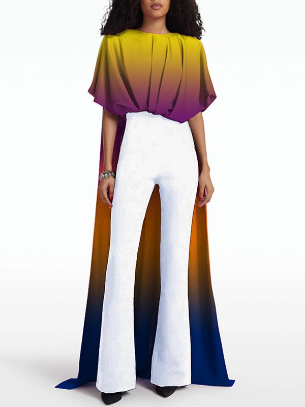 Half Sleeves High-low Contrast Color Gradient Round-neck T-Shirts Tops