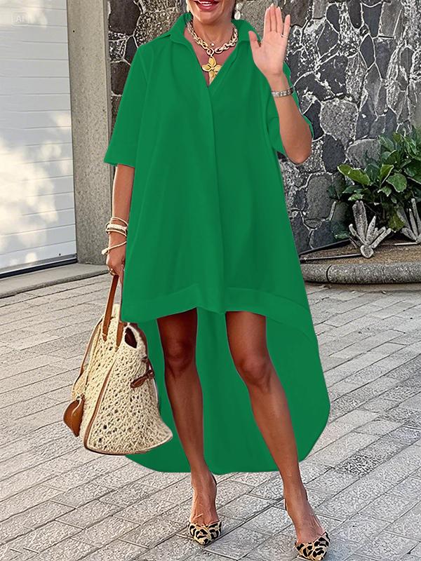 Half Sleeves High-Low Solid Color V-Neck Maxi Dresses