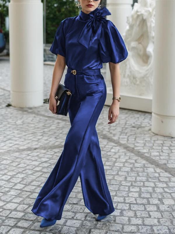 SkuCY-!184860MaterialPolyester StyleLoose , Puff Sleeves , Half Sleeves FeatureTied , Solid Color , Shiny NecklineStand Collar OccasionUrban , Leisure Fashion SeasonsSpring , Summer TypeBlouses&shirts Tops ColorDEEP BLUESizeS,M,L,XL,2XL Please consult the size chart we provide for this item's measurements to help you decide which size to buy.Please note: There may be 1-3cm differ due to manual measurement.CMINCHBustShoulderSleeveLengthS98372861M102382962L106393063XL1104031642XL114413265