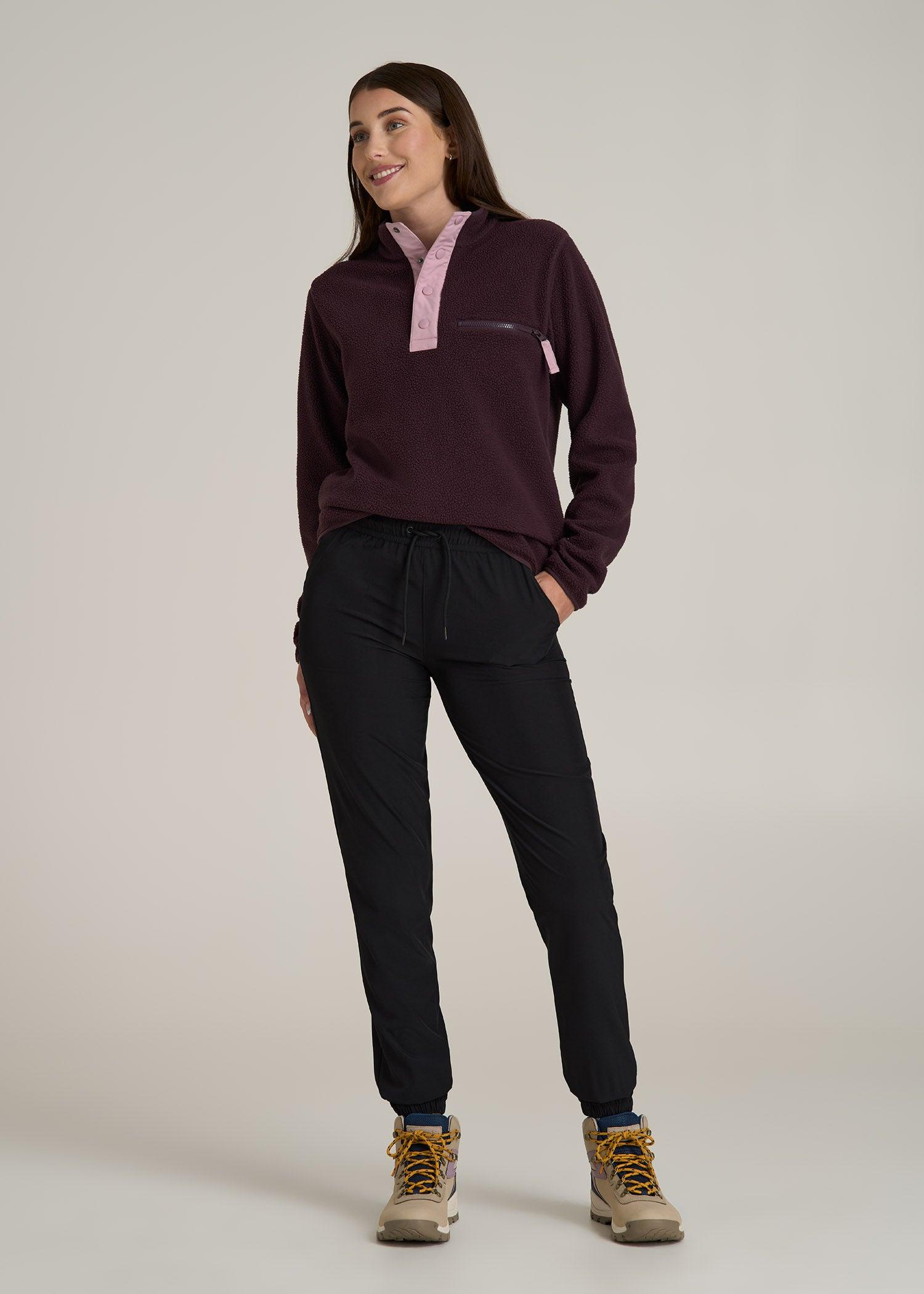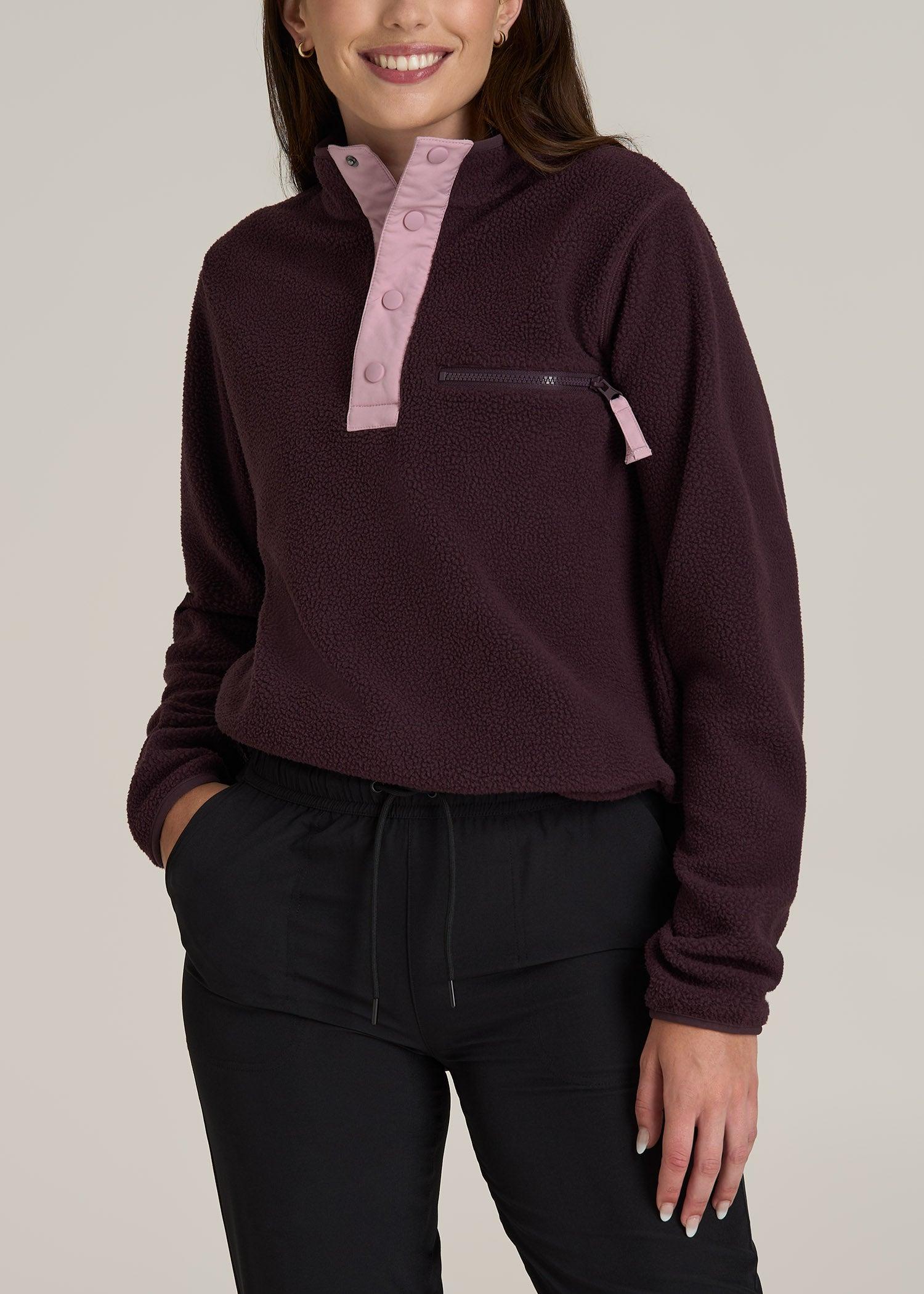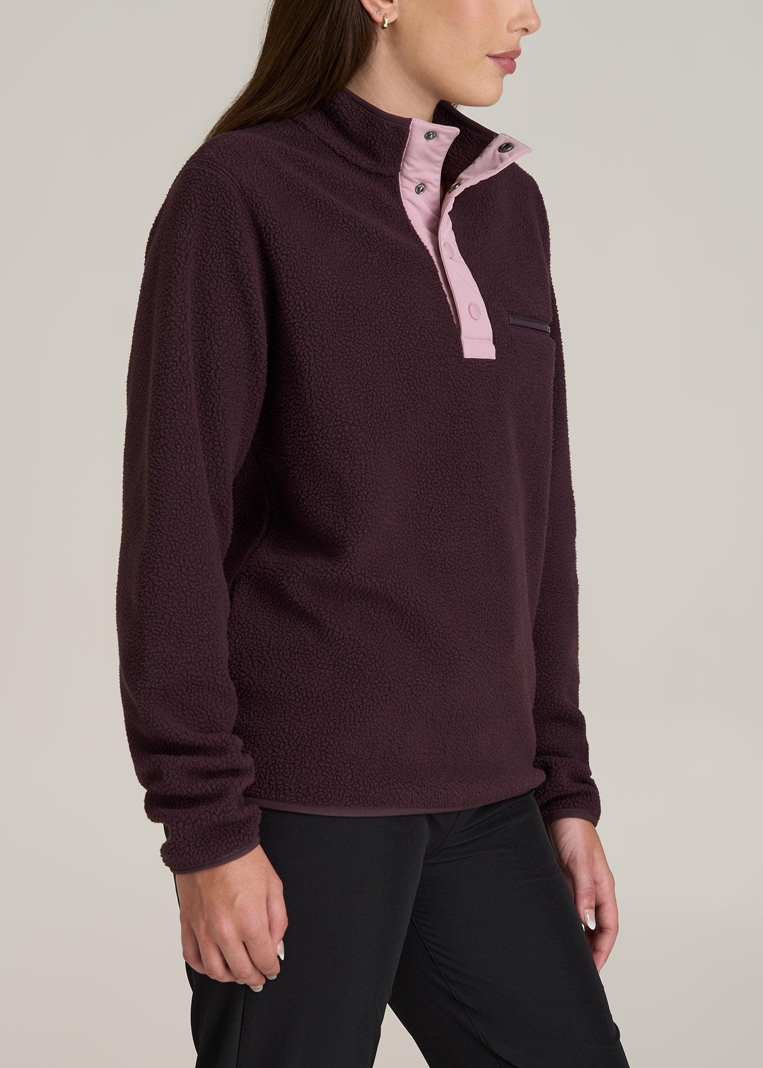 Half Snap Sherpa Sweatshirt for Tall Women in Deep Purple Female