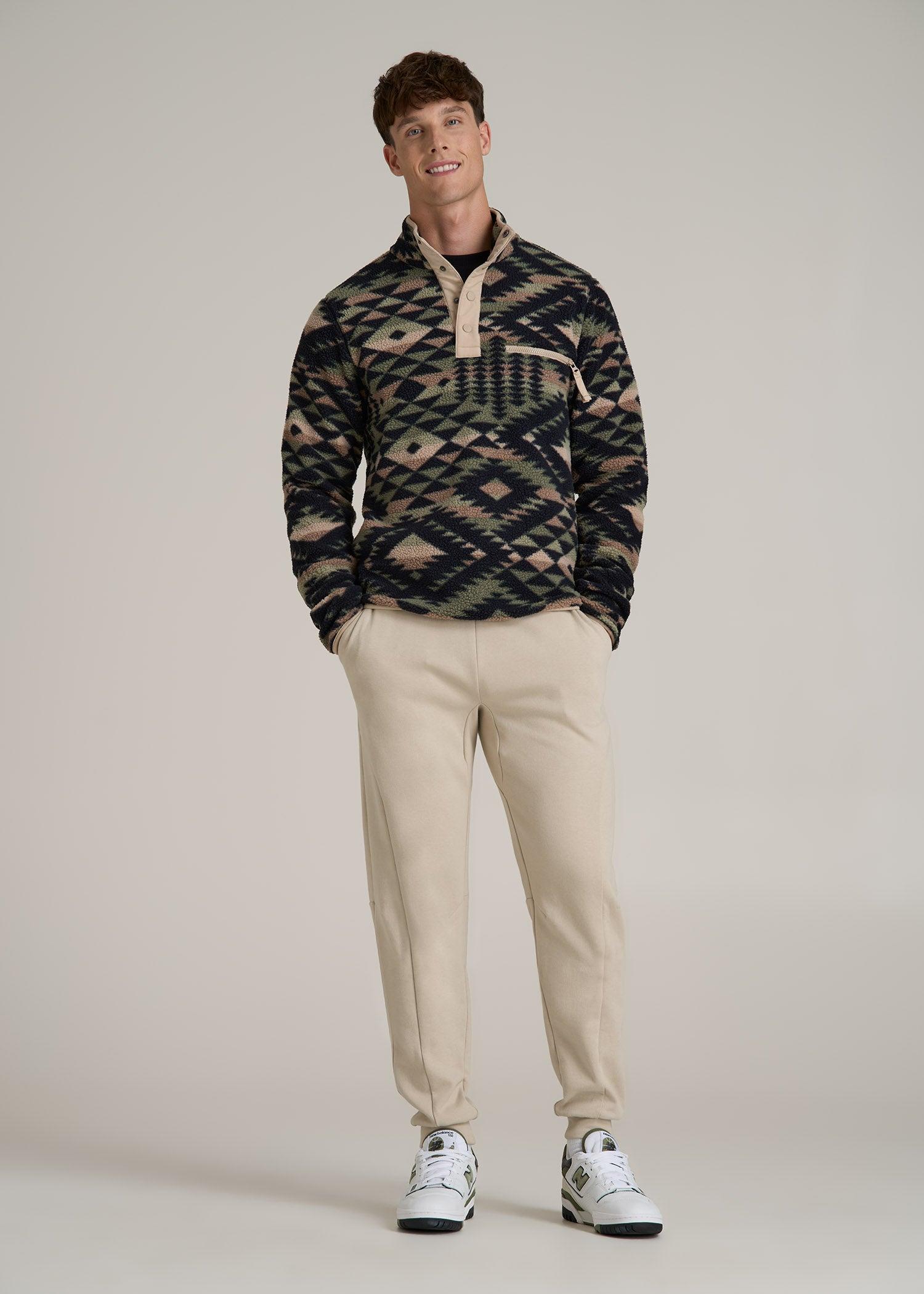 Elevate your casual wardrobe with the Half Snap Tall Men's Sherpa Sweatshirt, designed specifically for tall guys over 6'3". This sherpa pullover for tall men offers a modern fit and a cozy feel, making it ideal for any casual outing. With its stylish snap closure and practical zippered pocket, it's both functional and fashionable.• Modern fit for a sleek, contemporary look• Tall men's sherpa lined sweatshirt provides warmth without the bulk• Zippered pocket for secure storage