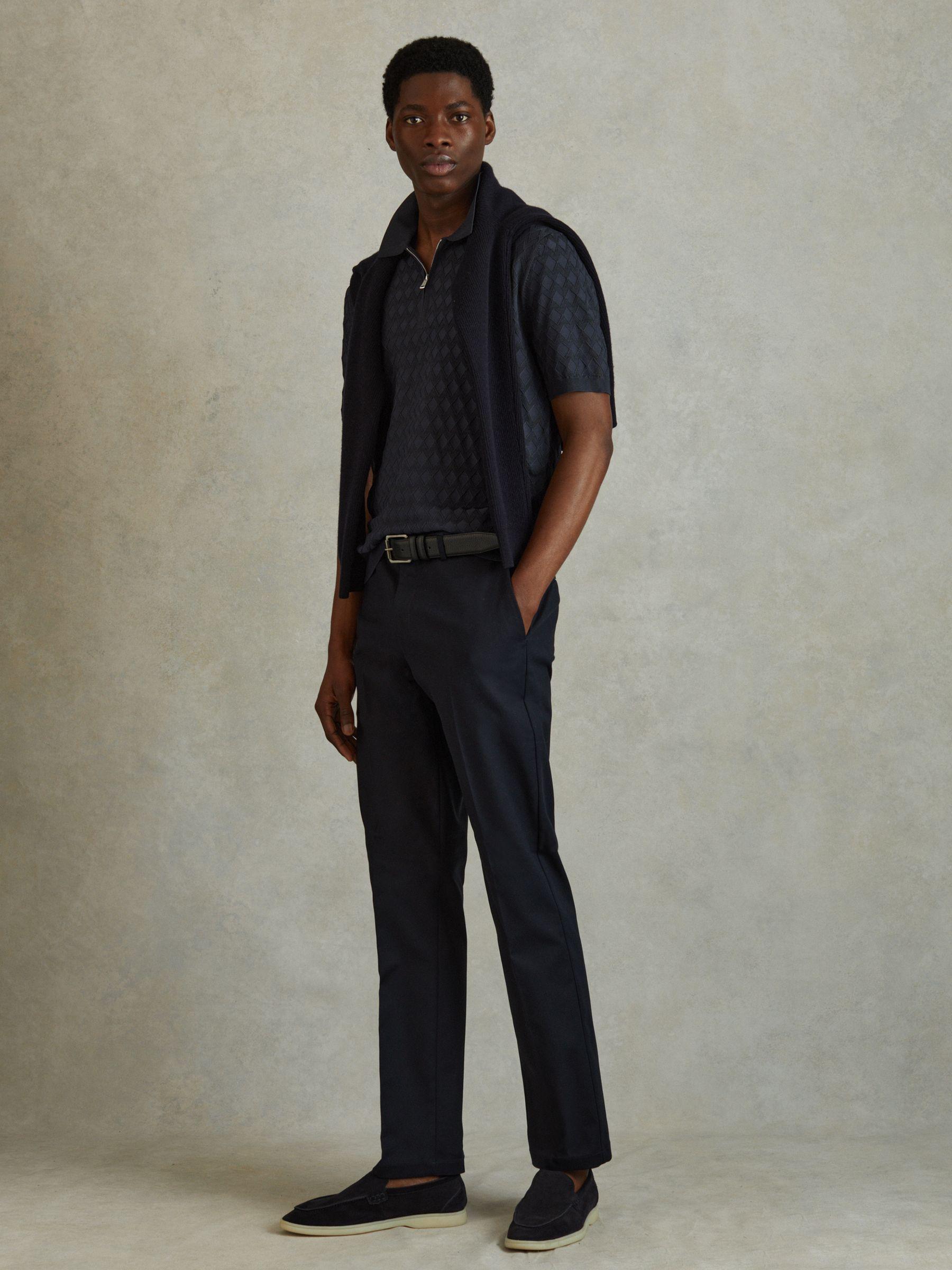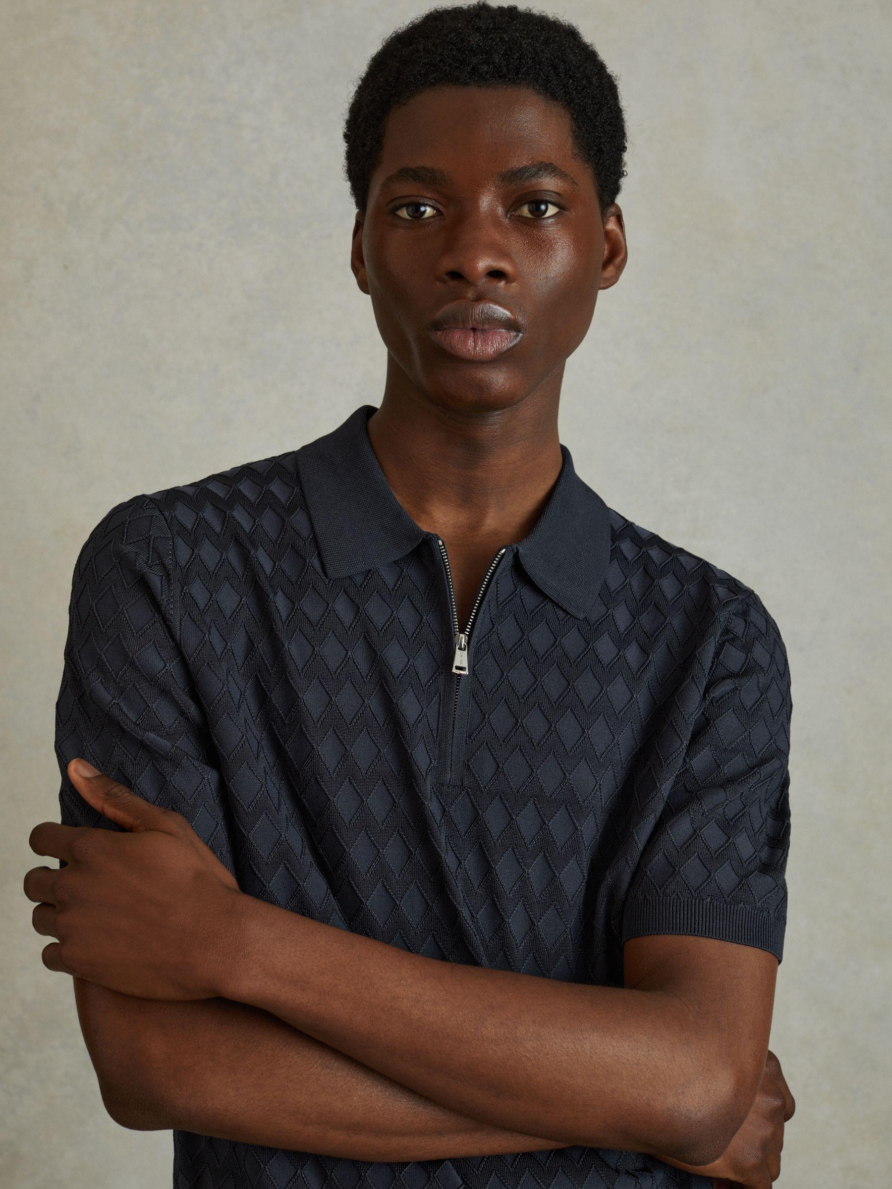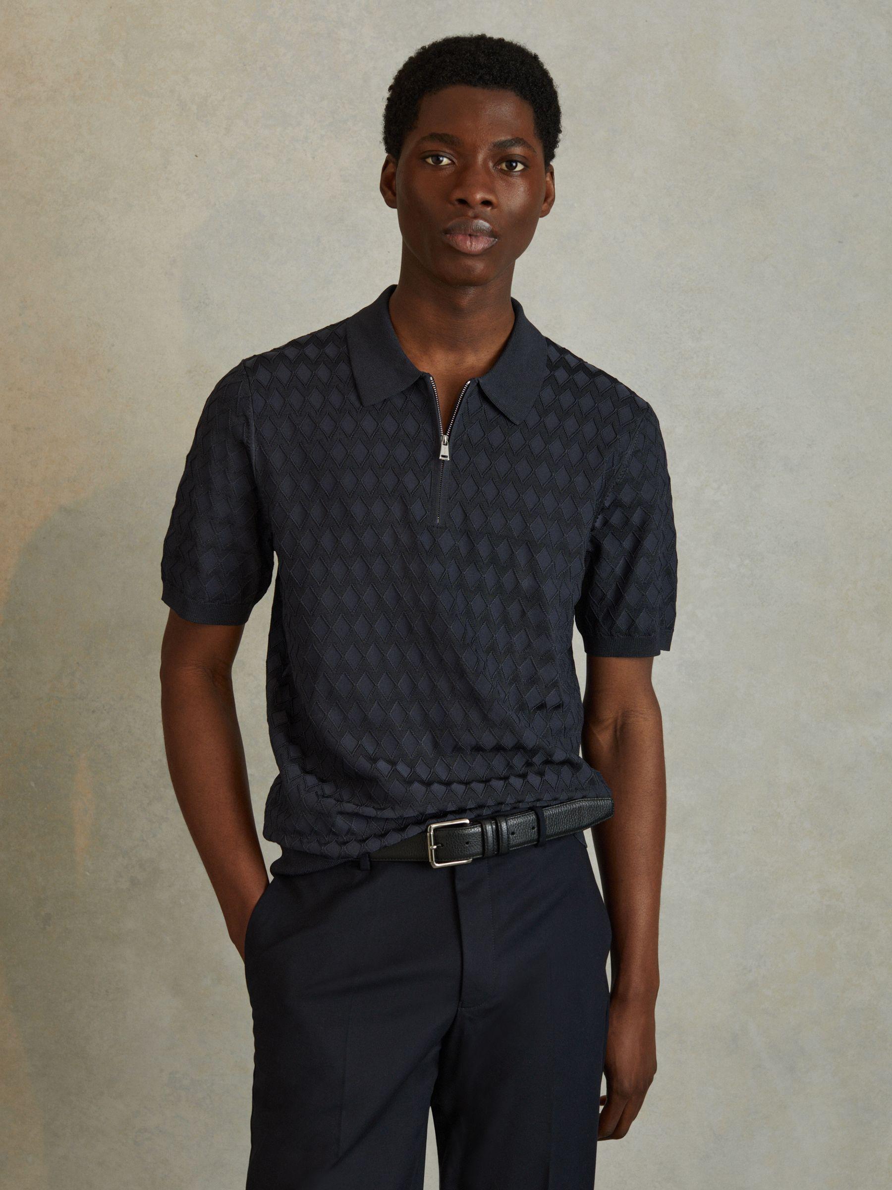 Half Zip Knitted Polo Shirt in Navy