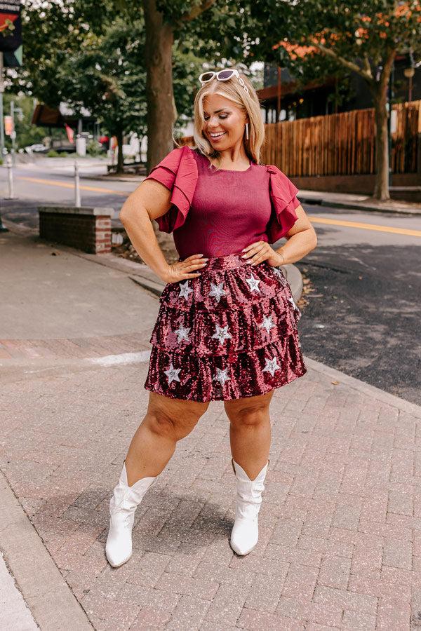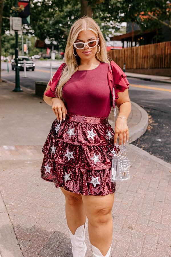 - Attention trend setting girlies! We have the stylish updated bodysuit you have been looking for! - Unlined stretchy knit material - A crew cut neckline - Short flutter sleeves featuring lightweight material - A figure hugging silhouette that ends in cheeky cut bottoms with snap closure - This piece is a perfect game day option for fans of Mississippi State, Texas A&M, South Carolina, Florida State, and more! Measurements XL : Bust 32", Hip 30", Length 30.5", Sleeve Length 7.5", Torso 27", Waist 26". 1XL : Bust 34", Hip 32", Length 31.5", Sleeve Length 7.5", Torso 28", Waist 28". 2XL : Bust 36", Hip 34", Length 32.5", Sleeve Length 7.5", Torso 29", Waist 30".