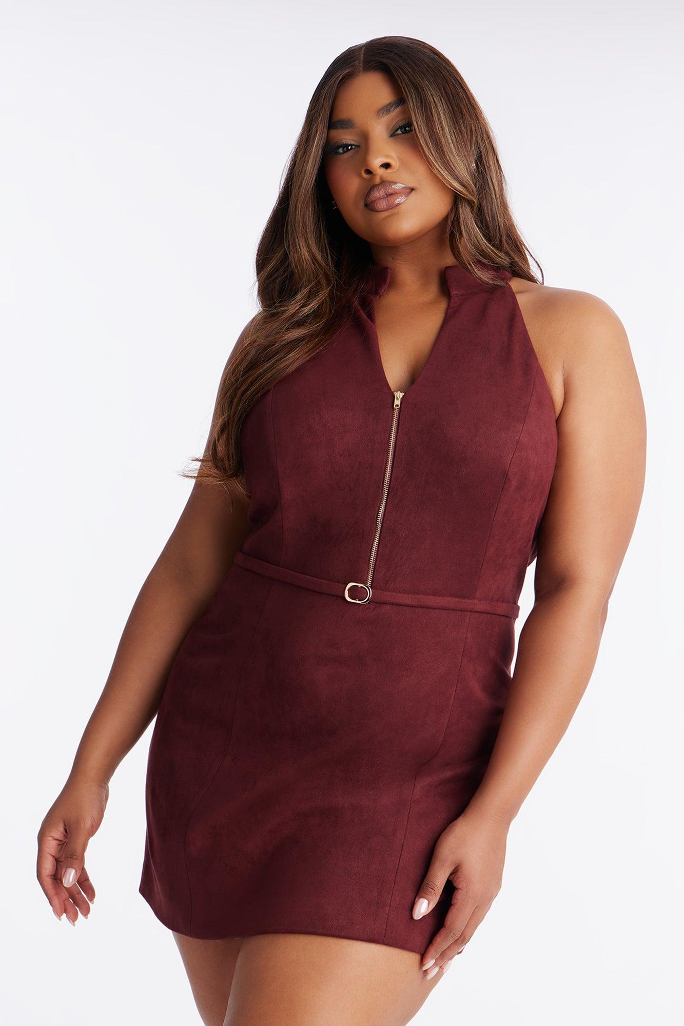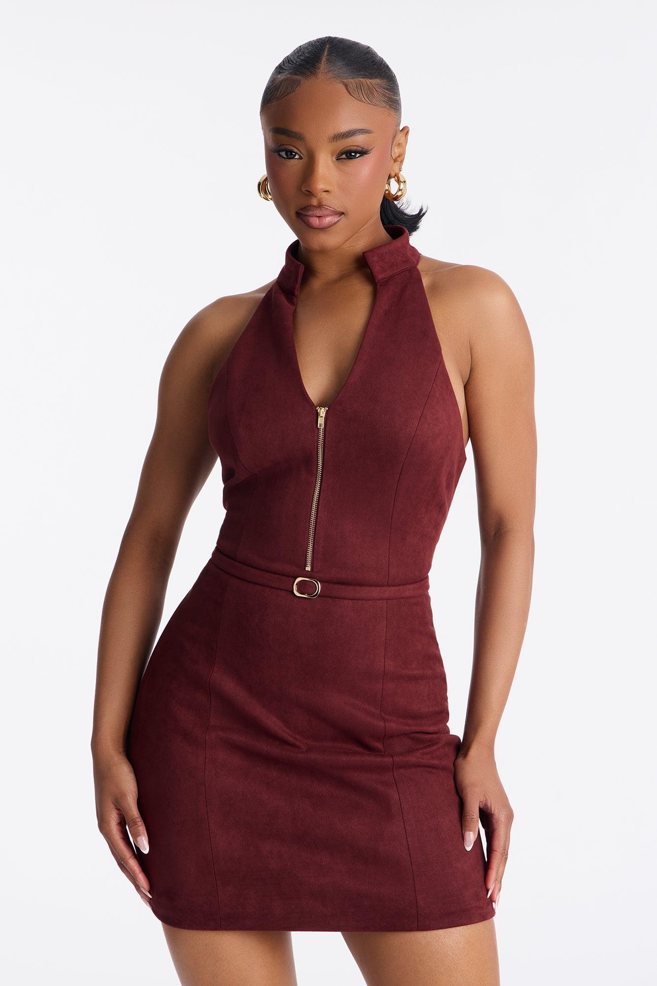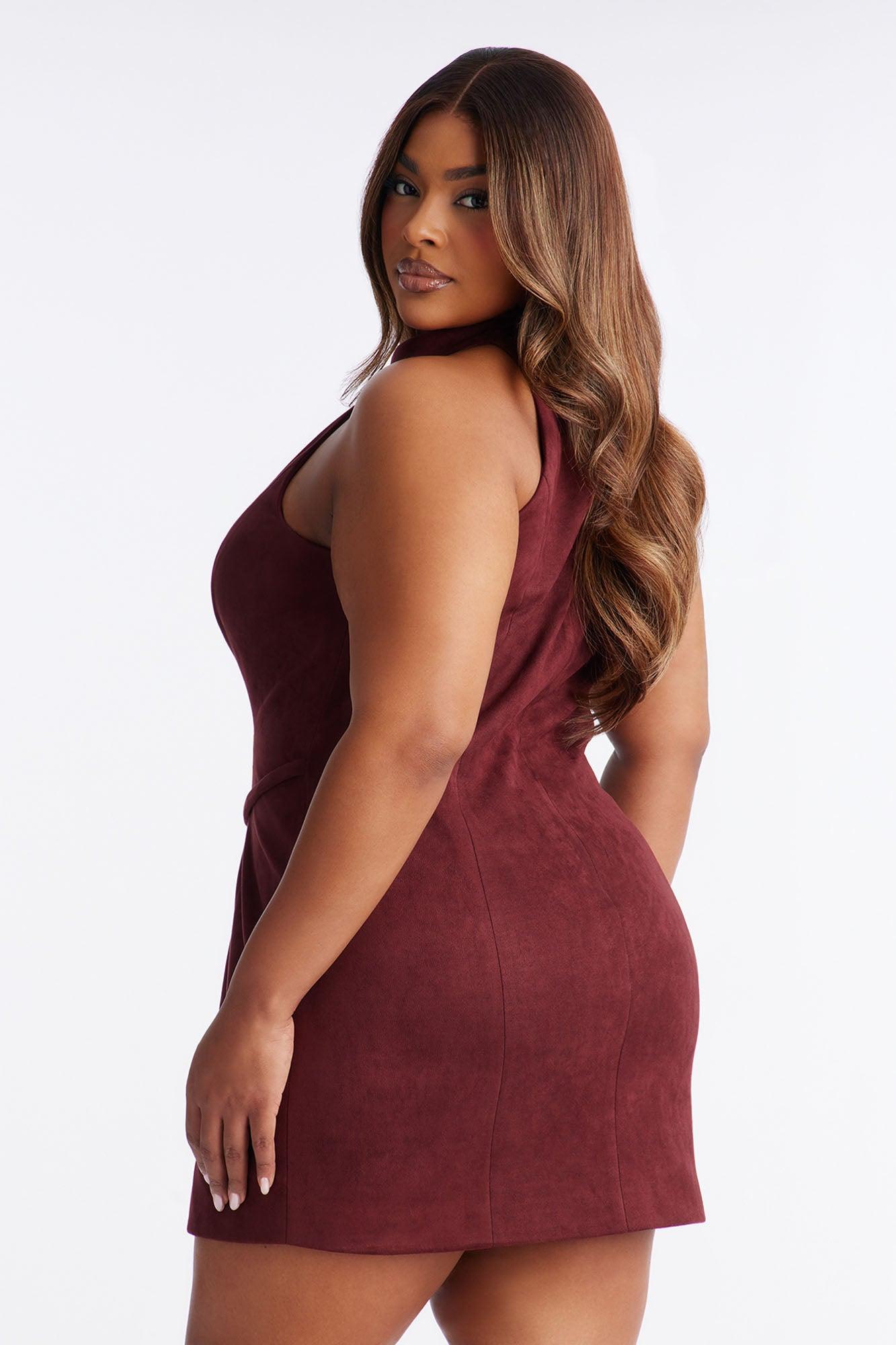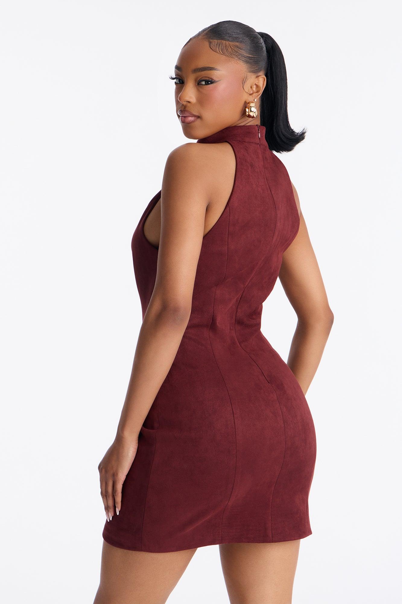 Hallie Sleeveless Faux Suede Mini Dress - Burgundy Female