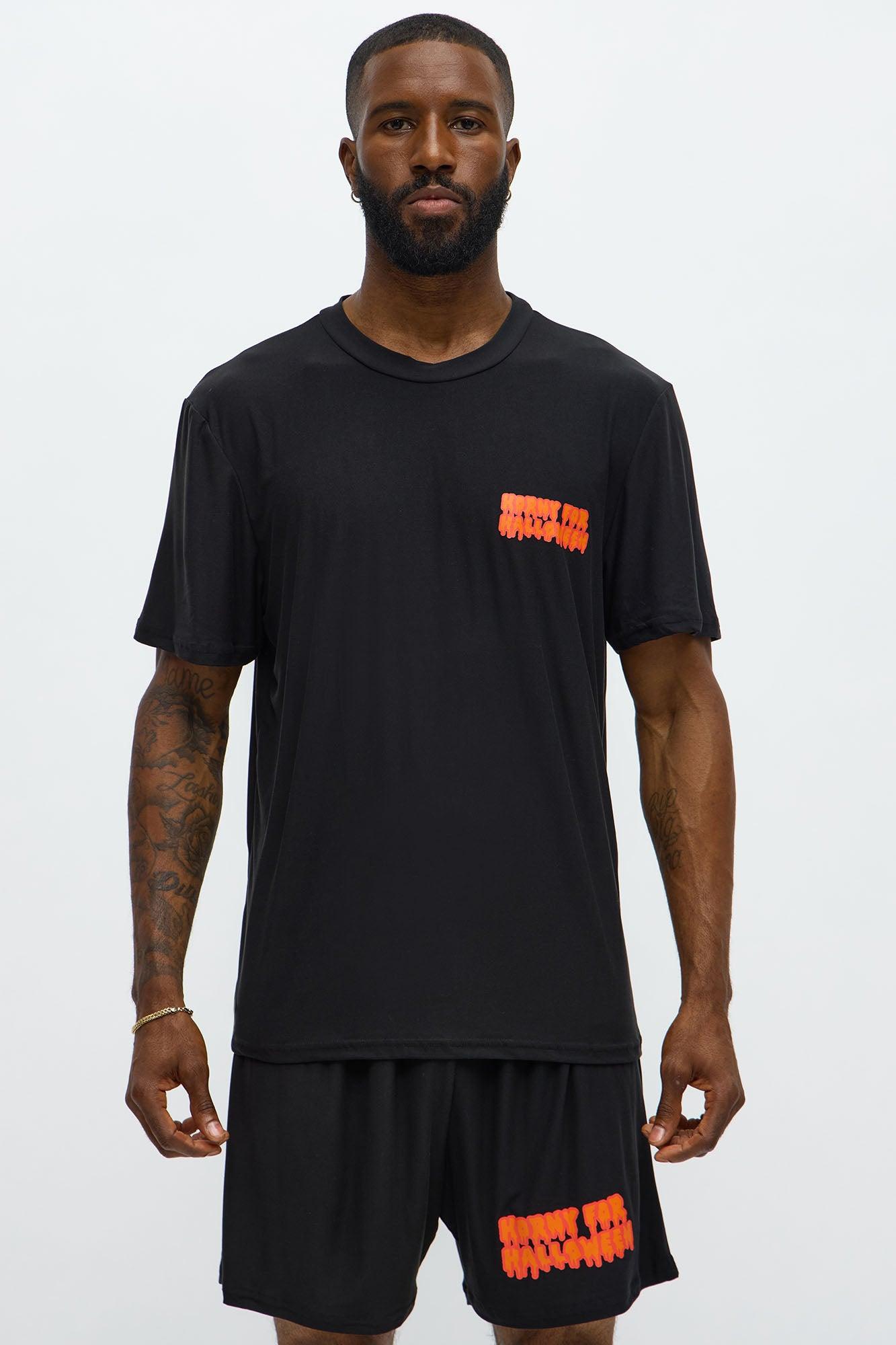 Available In Black/Orange. Men's Halloween Sleep Set Includes T-shirt And Shorts Graphic Detail Relaxed Fit T-shirt Crew Neck Regular Fit Shorts Elastic Waistband Disclaimer: Due To The Printing Process A Difference In Saturation May Occur. Each Garment Is Unique. Self: 95% Polyester 5 % Spandex Imported