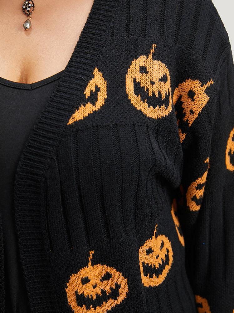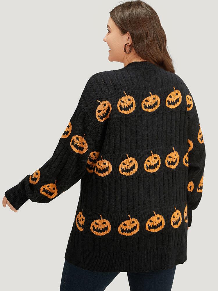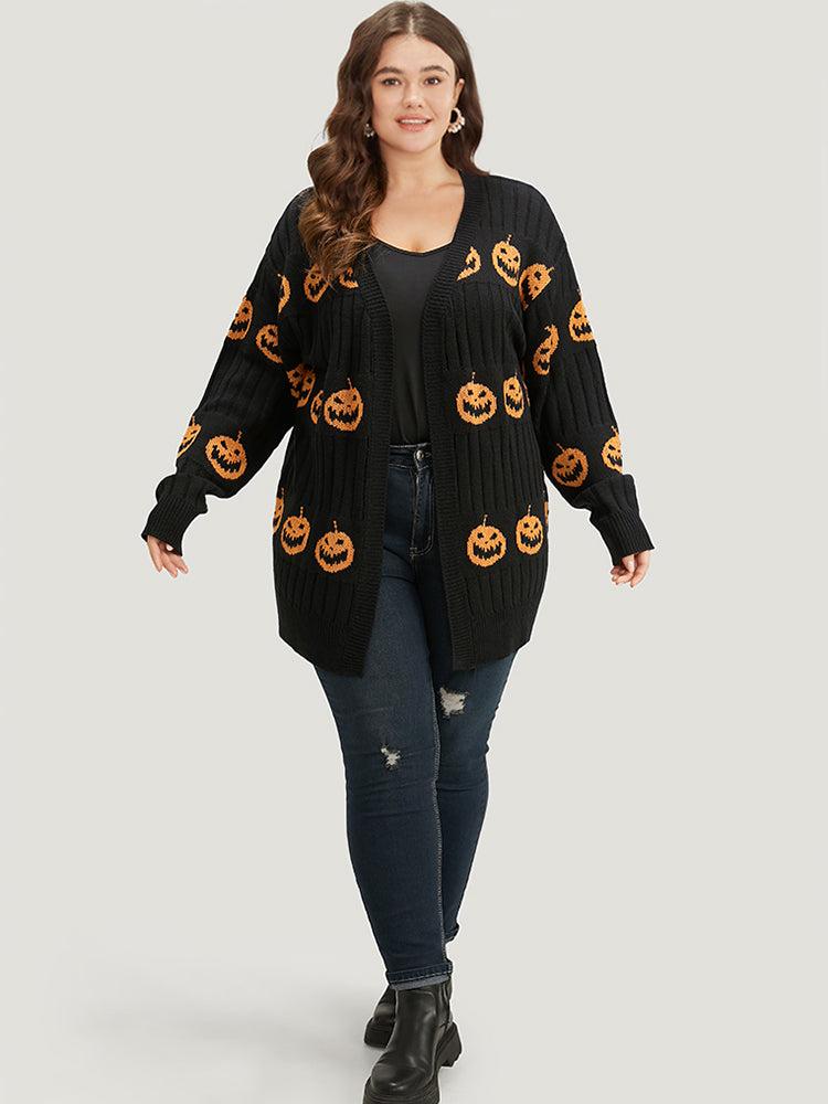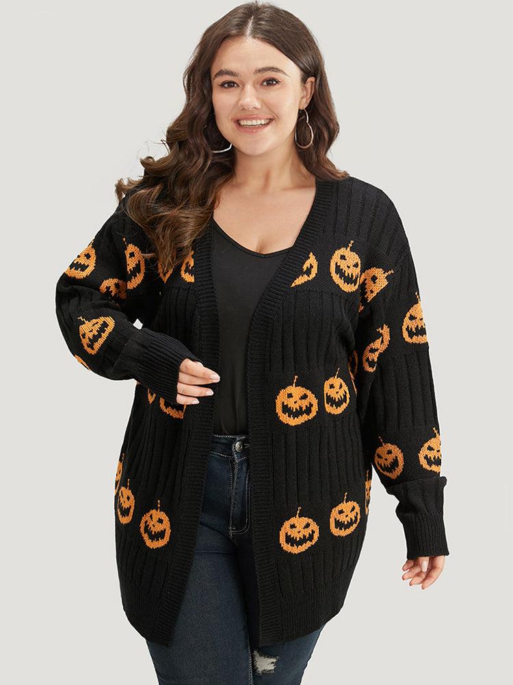 Shop Halloween Pumpkin Graphic Open Front Cardigan now and redefine your style with confidence at BloomChic. Tailored for mid and plus-size women. This trendy Sweaters Cardigans Women, sizes 10-30. Color:Rust;Style:Casual;Neckline:Open Front;Sleeve Type:Regular Sleeve;Pattern Type:Graphic, Graphic-Halloween;Details:Patchwork, Elastic cuffs, Texture;Pocket:No-pocket;Belt:No-belt