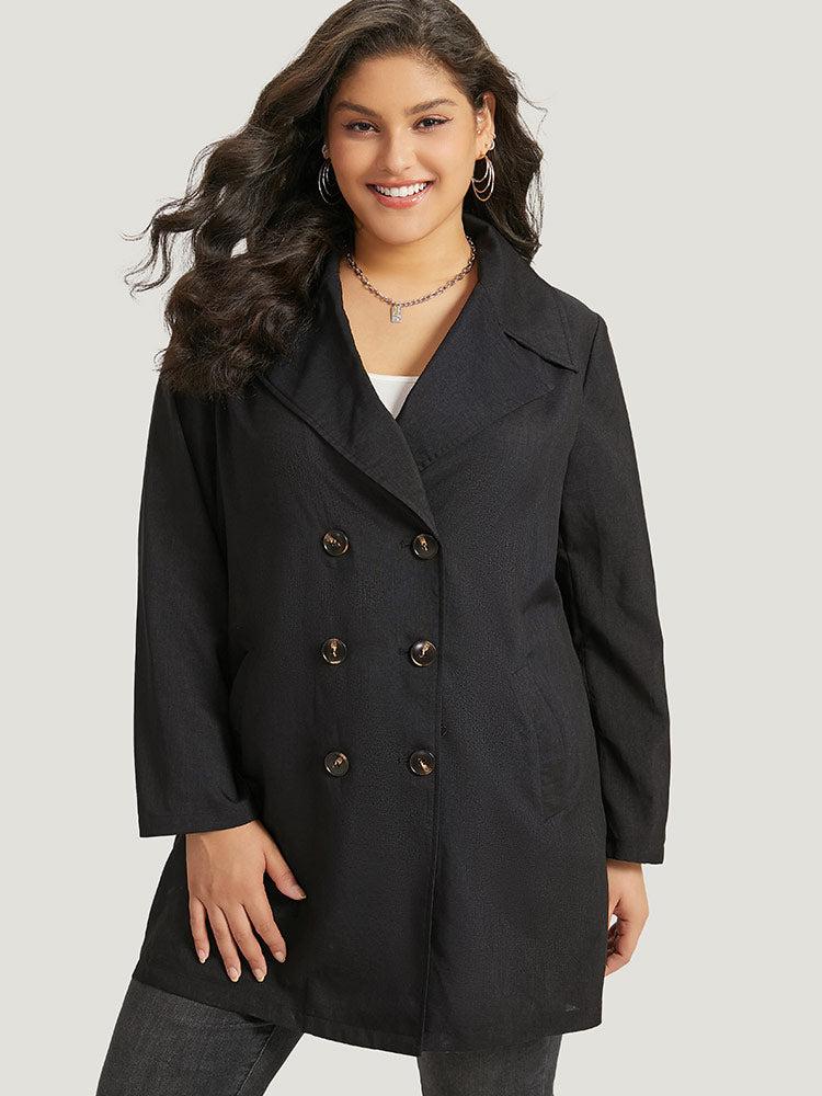 Shop Halloween Solid Lapel Collar Double Breasted Pocket Coat now and redefine your style with confidence at BloomChic. Tailored for mid and plus-size women. This trendy Outerwear Women, sizes 10-30. Season:Fall;Color:Black;Pattern Type:Plain;Details:Pocket, Button, Plain;Pocket:It is perfectly sized to carry a phone.;Belt:No-belt;Closure Type:Button;Lining:No-lining