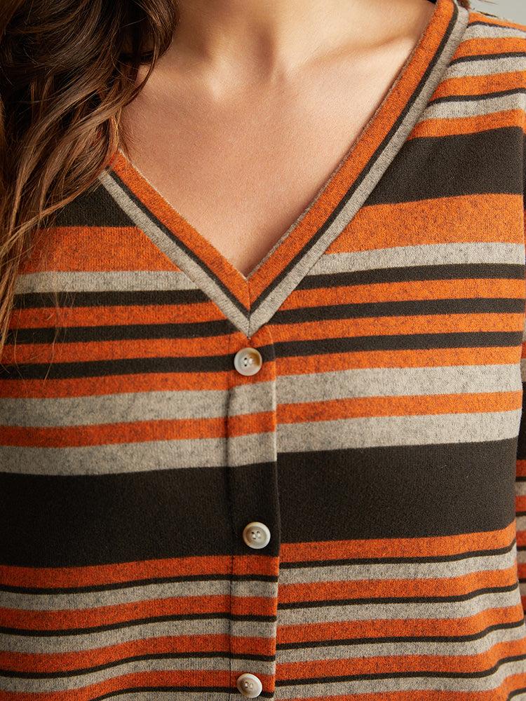 Shop Halloween Striped Contrast Button Detail T-shirt now and redefine your style with confidence at BloomChic. Tailored for mid and plus-size women. This trendy Tops Women, sizes 10-30. Season:Winter;Color:Multicolor;Style:Casual;Pattern Type:Striped;Neckline:V-neck;Sleeve Type:Regular Sleeve;Details:Button, Contrast;Pocket:No-pocket