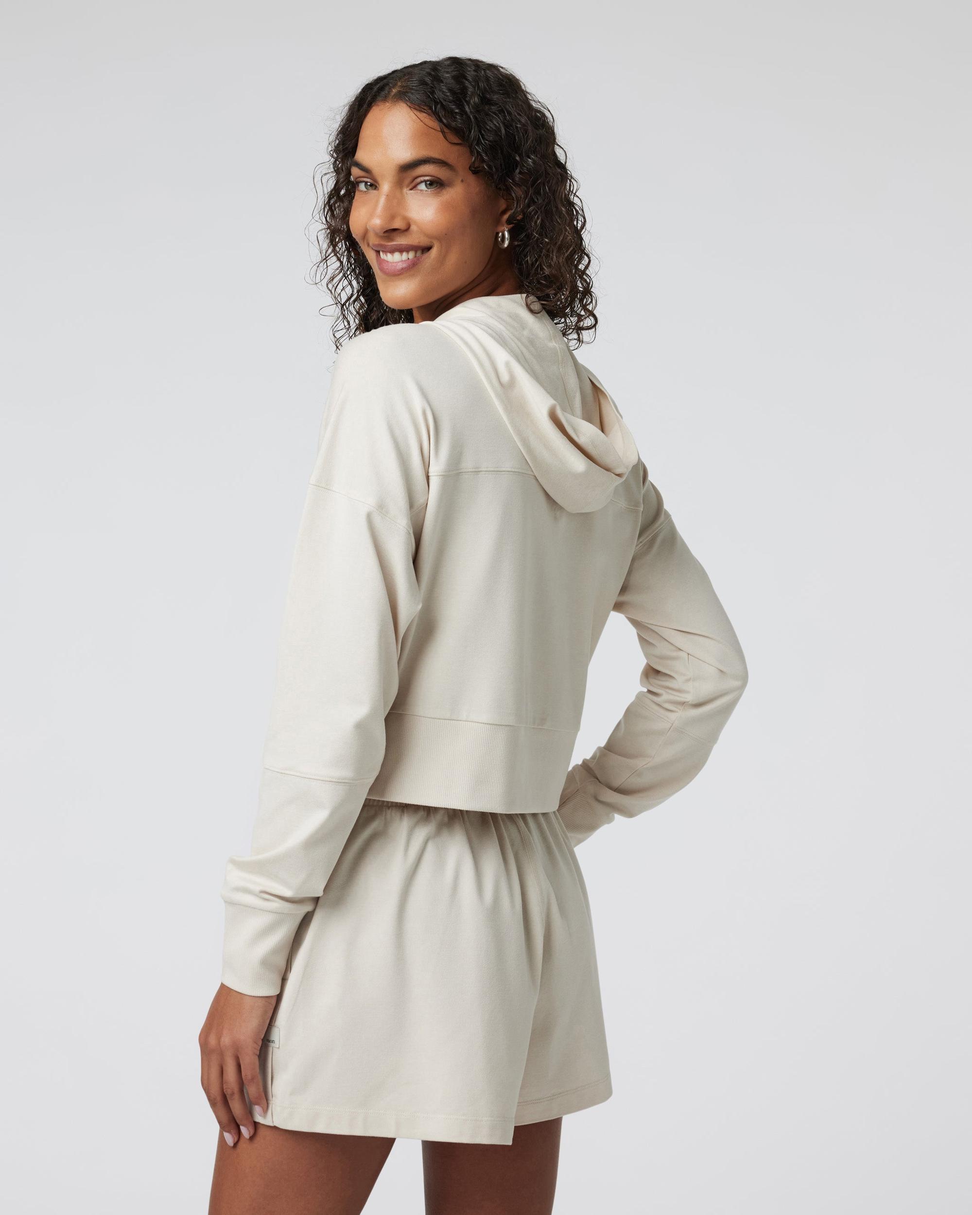 Retro-inspired and super comfortable, the Halo Half Zip Cropped Hoodie has a slouchy, boxy fit. Shop this women's Milkweed Heather hoodie from Vuori.