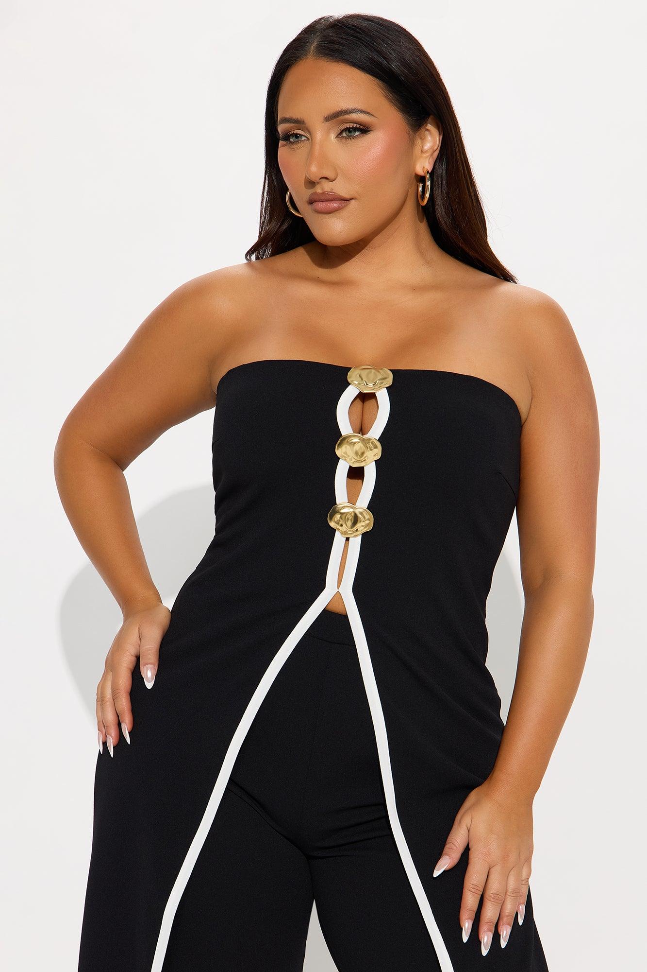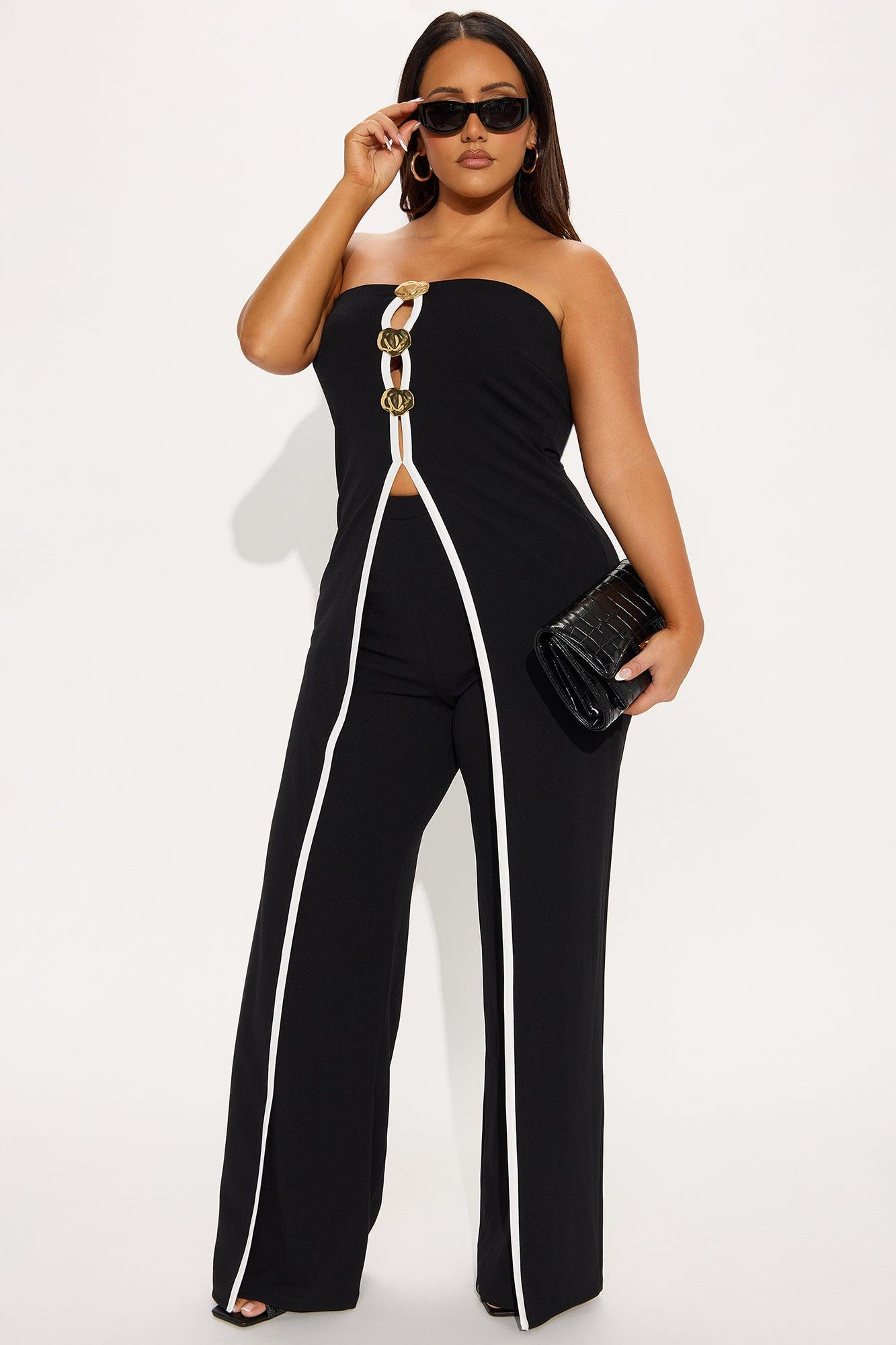 For The Moment Draped Halter Jumpsuit - Black/White Female