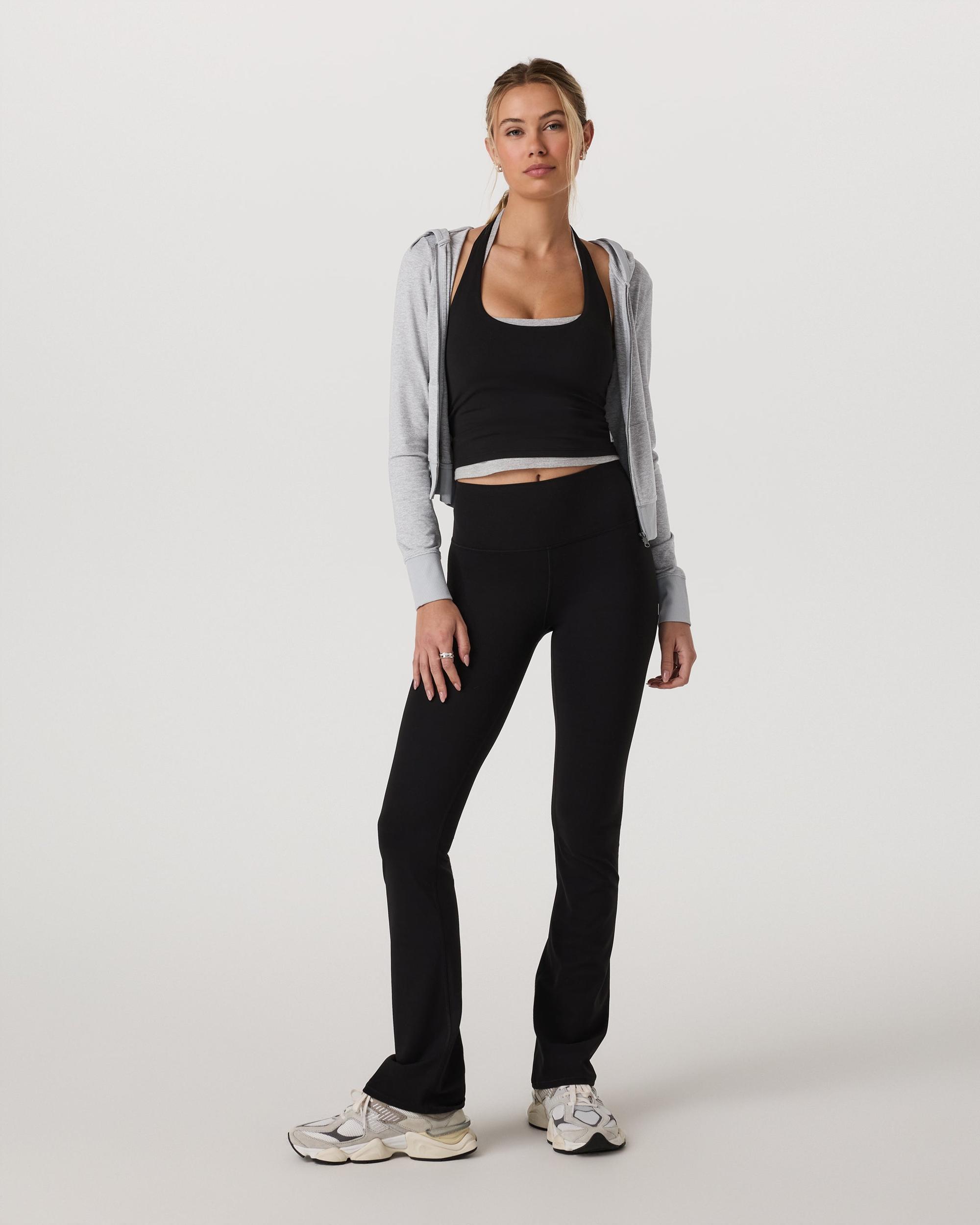 The Halo Mini Full Zip Hoodie in Pale Grey Heather puts a modern spin on classic comfort. Shop this fitted, cropped DreamKnit™ hoodie from Vuori.