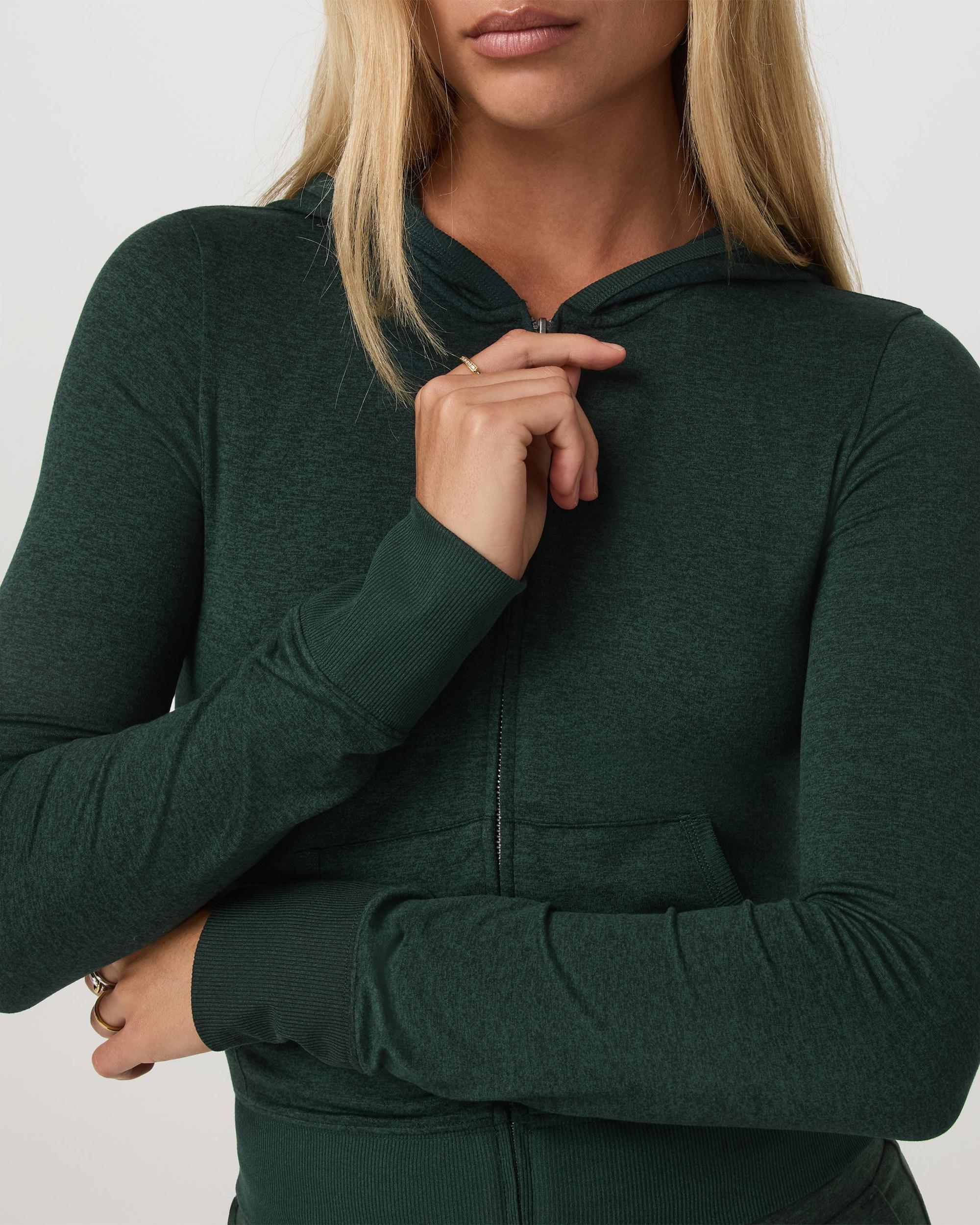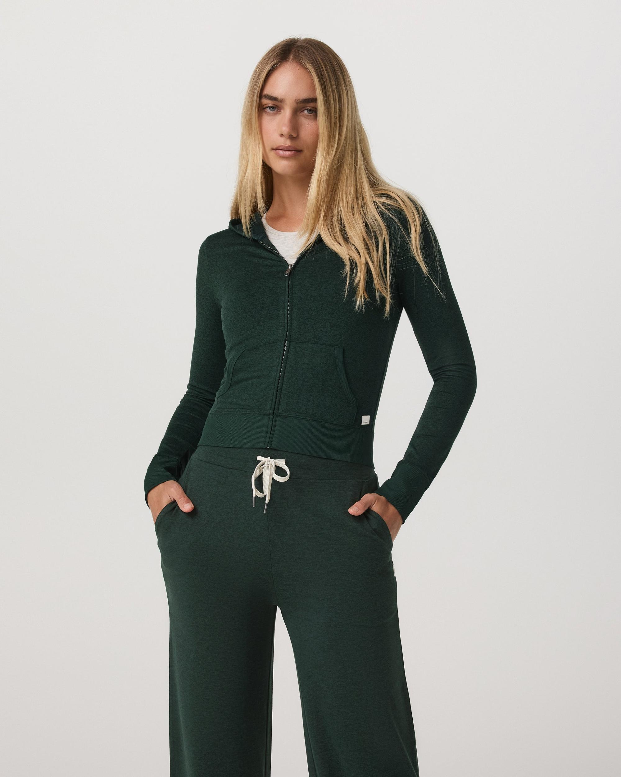 Shop the Halo Mini FZ Hoodie in Evergreen Heather at Vuori. This women’s cropped hoodie features a fitted shape, full zip & soft DreamKnit™ for layering.