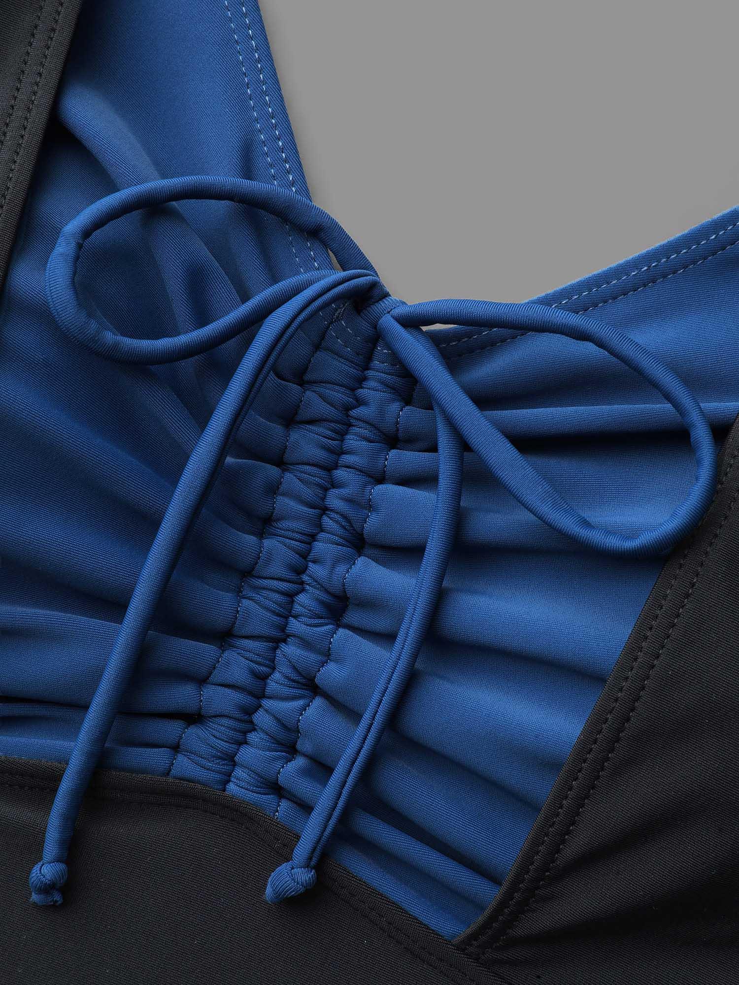 Shop Halter Neck Drawstring Gathered One-Piece Swimsuit now and redefine your style with confidence at BloomChic. Tailored for mid and plus-size women. This trendy Swimwear Women, sizes 10-30. Season:Spring;Color:Black;Style:Beach Vacation;Cup Type:Removable cups;Coverage:Full;Neckline:Halter neck;Sleeve Type:Sleeveless;Prints:Geometric & color block;Details:Drawstring, Gathered, Contrast;Pocket:No-pocket;Belt:No-belt;Chest pad:Removable Padding;Lining:No-lining;Closure Type:Drawstring;Structural function:Adaptive-Fit,Tummy-Sculpt