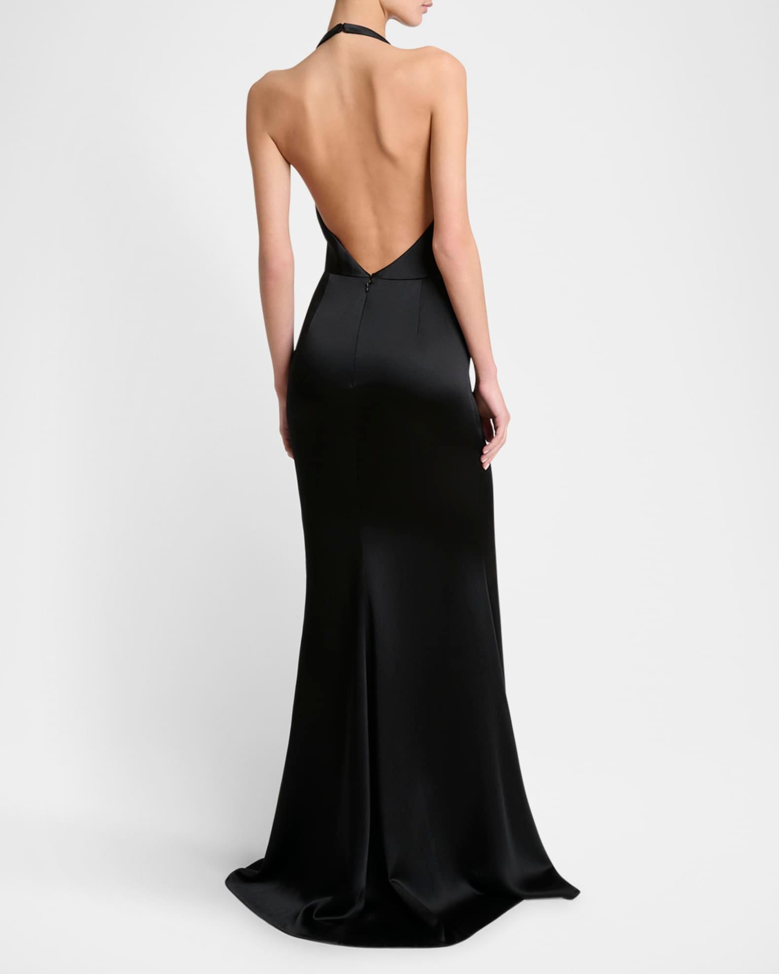 Halter Satin Backless Trumpet Gown