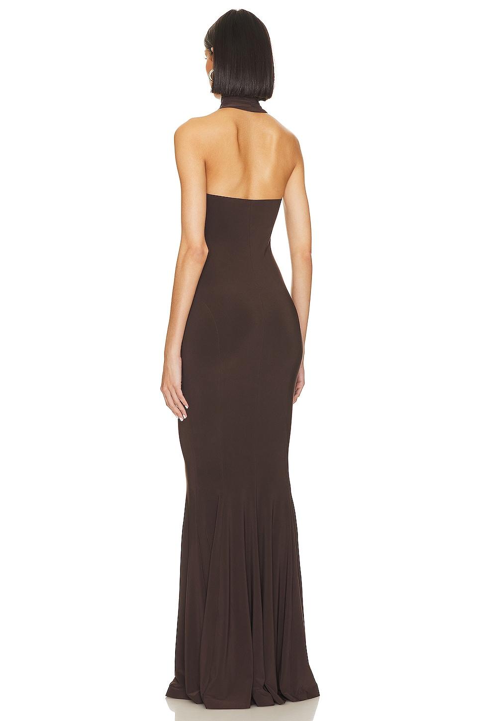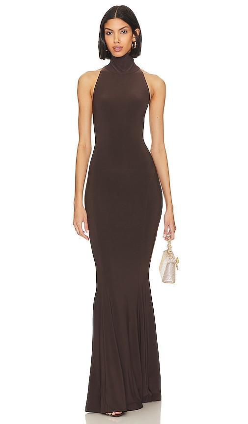 Norma Kamali Halter Turtle Fishtail Gown in Chocolate - Chocolate. Size S (also in M). Dazzle at your next special event in Norma Kamali's Chocolate Halter Turtle Fishtail Gown. With its unique turtleneck halterneck design and comfortable jersey fabric, you'll be the center of attention.. 95% polyester 5% spandex. Made in China. Hand wash. Unlined. Pull-on turtleneck styling. Jersey fabric. NKAM-WD510. KK3233PLB14028. The first designer to receive a plaque on New York's 7th Avenue, she is credited with inventing the sleeping bag coat, the silk parachute look, high heeled sneakers, and the popular packable, multi-use poly jersey. Let Norma Kamali show you the way.