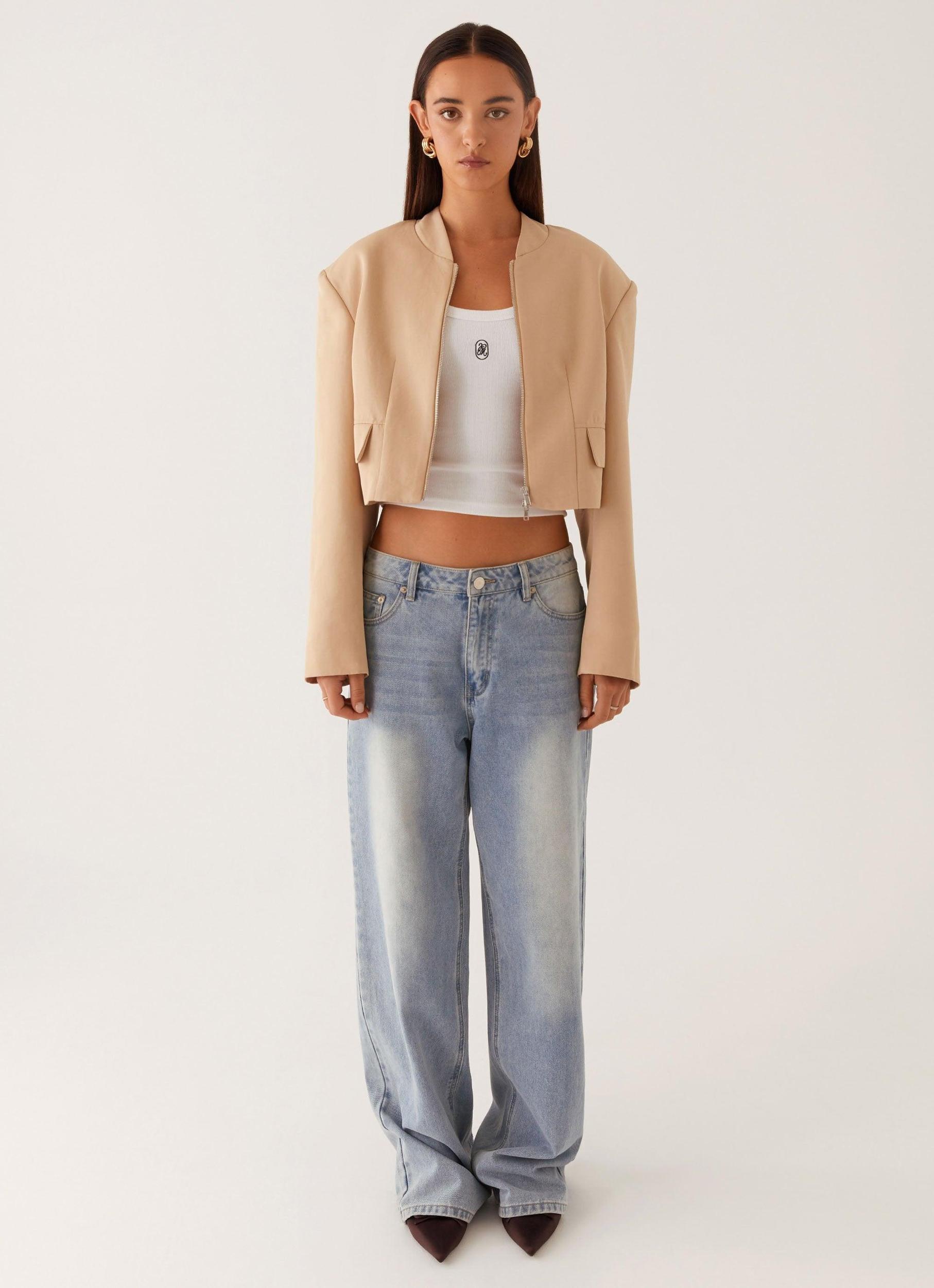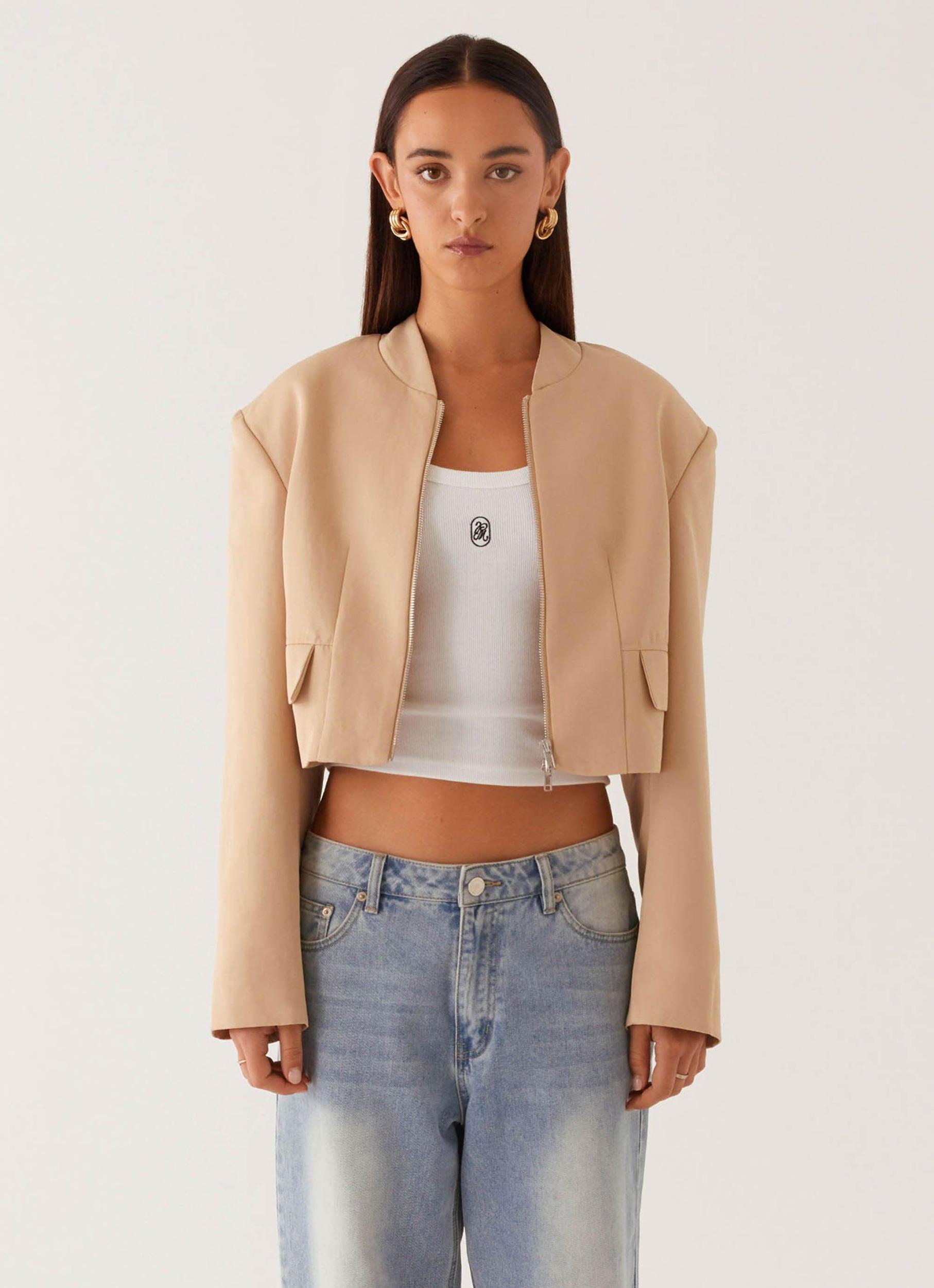 Peppermayo Exclusive Embrace the after-dark allure with the Halyn Cropped Bomber Jacket. Featuring a sleek rounded neckline and twin front flap pockets, this fully lined jacket offers a structured yet edgy vibe. Perfectly cropped for golden-hour adventures, it’s your go-to for a statement-making silhouette. - Rounded neckline- Front metal zipper- Front twin flap pockets- Fully lined- 100% polyester- Lining: 100% polyester Size AU 8 / US 4 garment measurements: Length: 48.5cm / 19.1inSleeve length: 62cm / 24.4inChest width: 103cm / 40.6inHem width: 100cm / 39.4in Roberta is 177cm and wears size AU 6 / size US 2