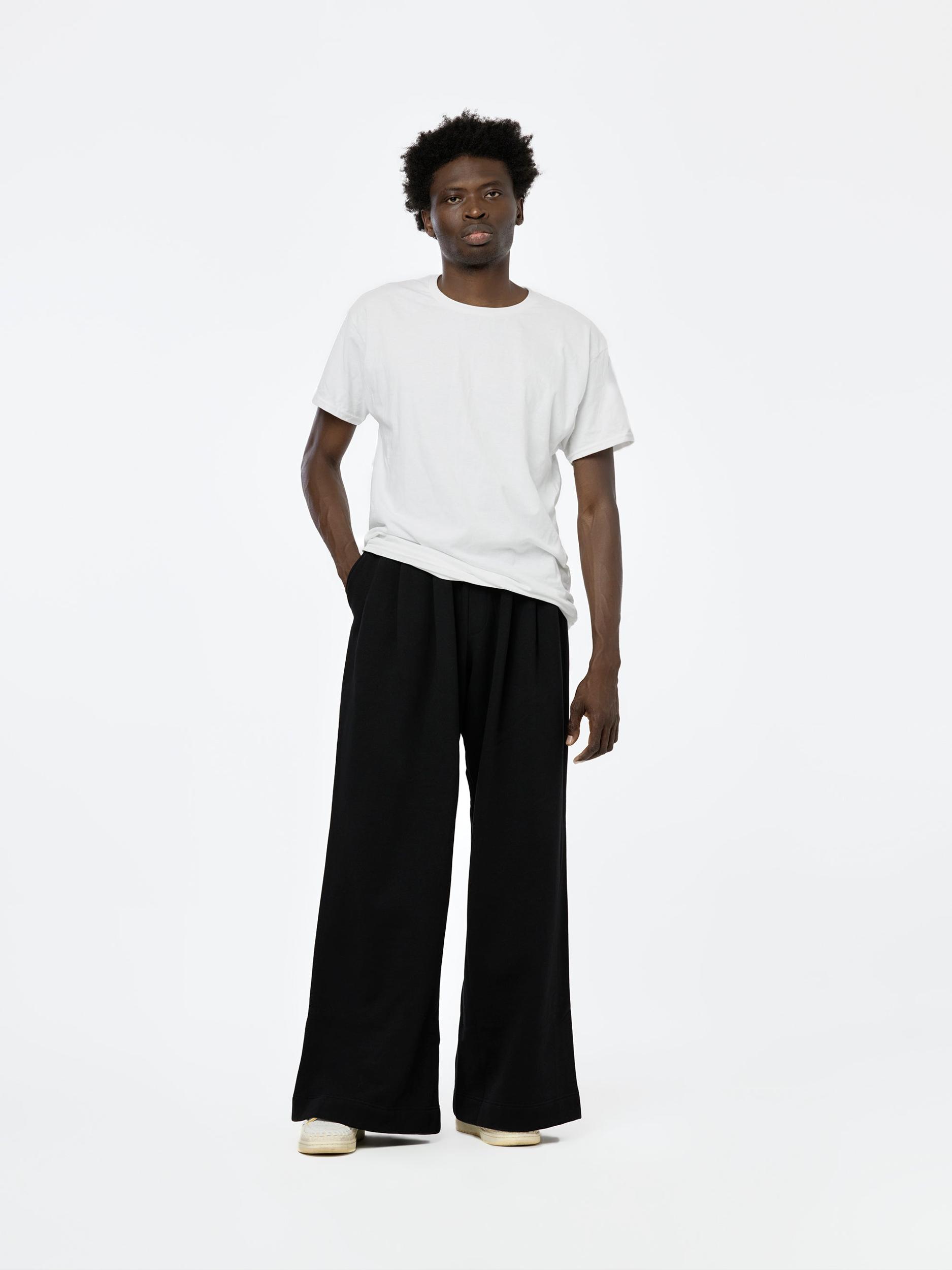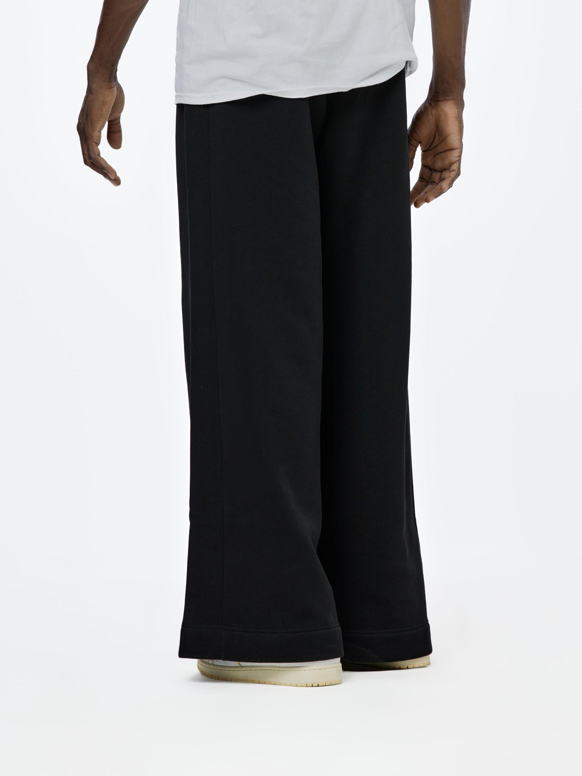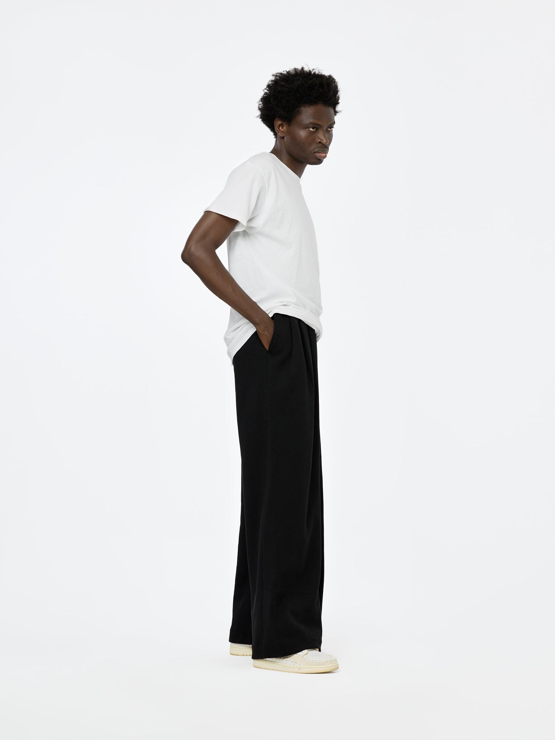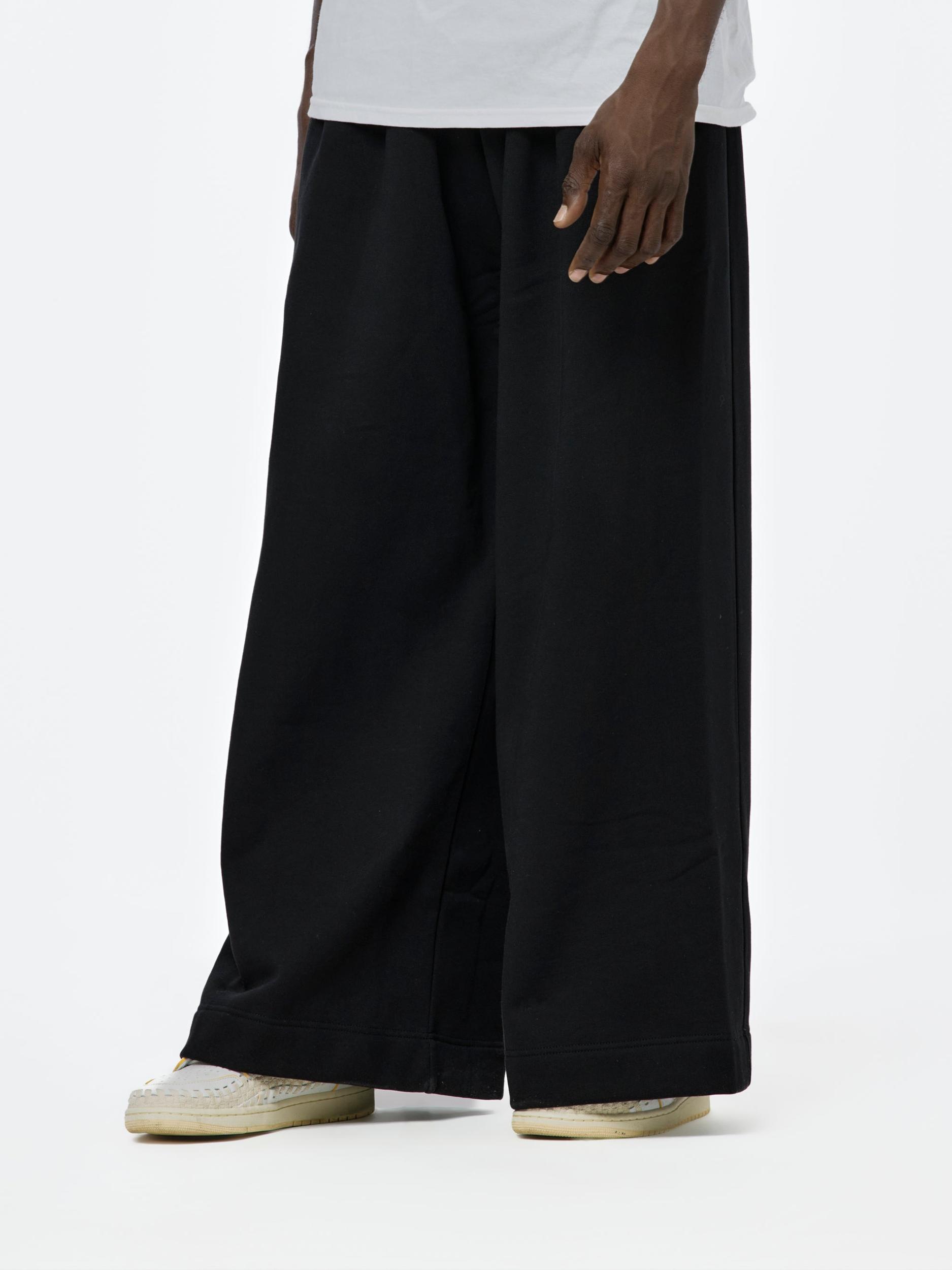 These wide-leg sweatpants are crafted from soft French terry, offering a perfect blend of comfort and style. Designed with a high-rise fit, they feature a concealed drawstring at the elasticized waistband for a custom fit. The three-pocket styling adds practicality, while subtle pleats at the front lend a touch of sophistication to the relaxed silhouette. These sweatpants are an elevated take on a casual staple, ideal for both lounging and stepping out in effortless style.