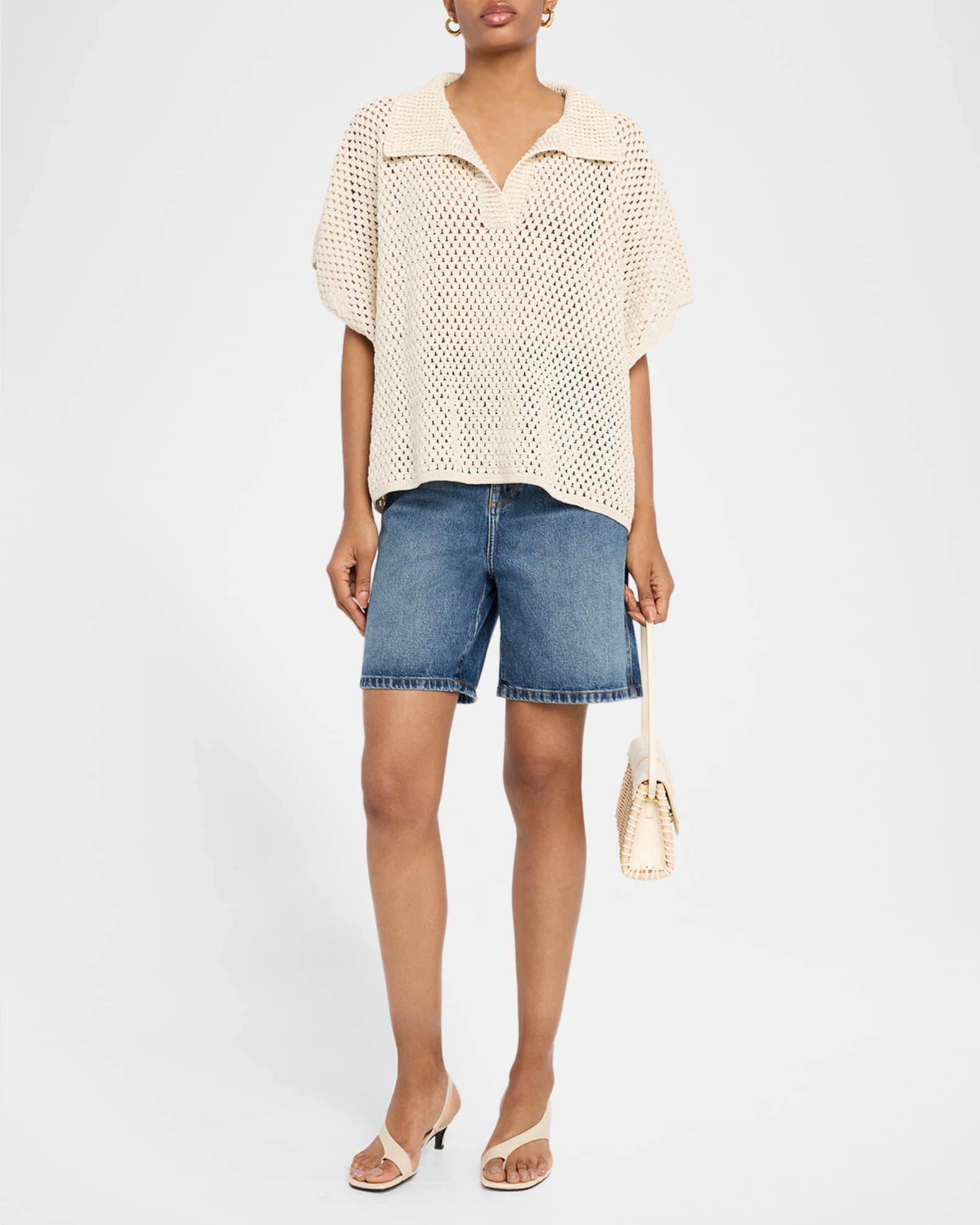 Hand Crochet Short-Sleeve Cape Polo Sweater
