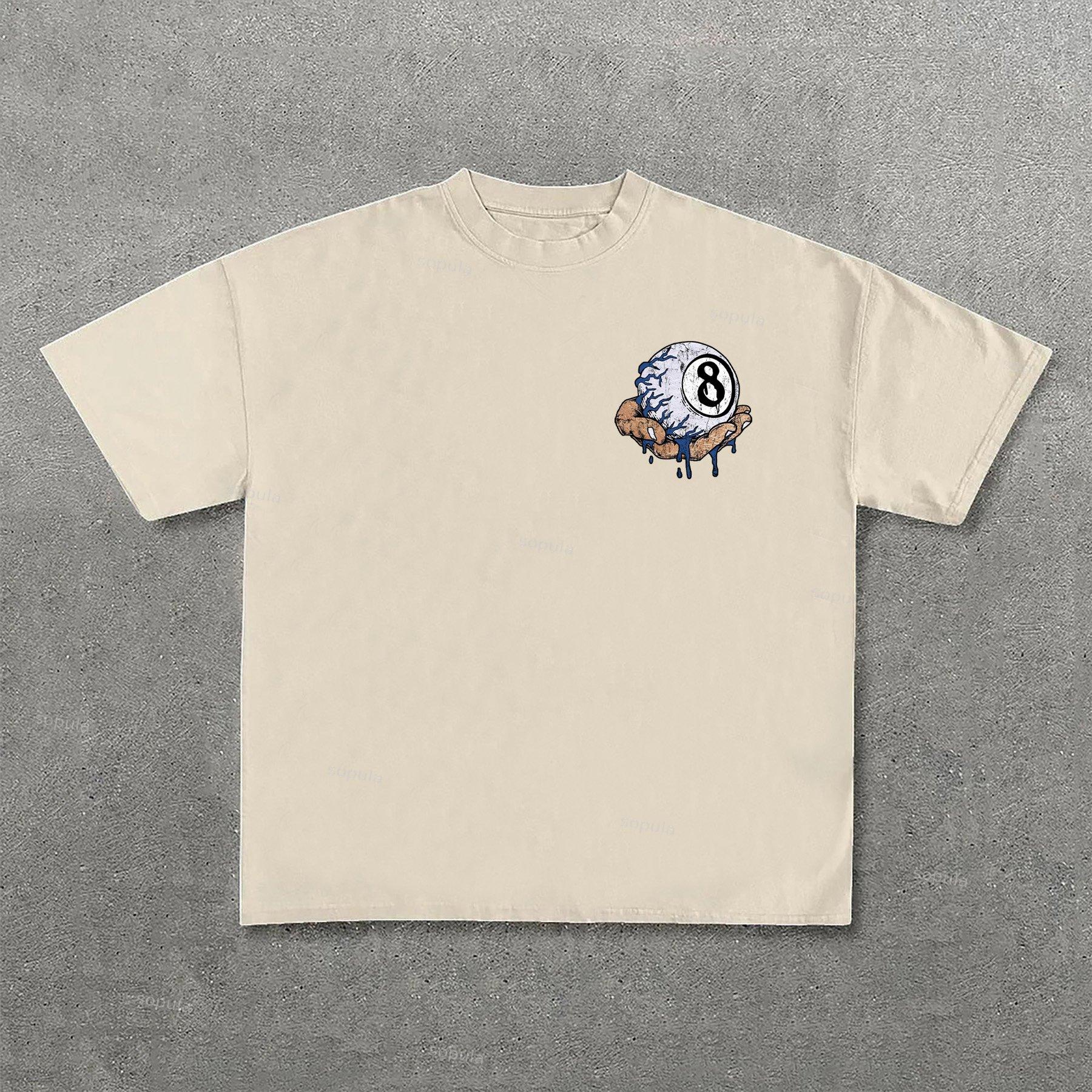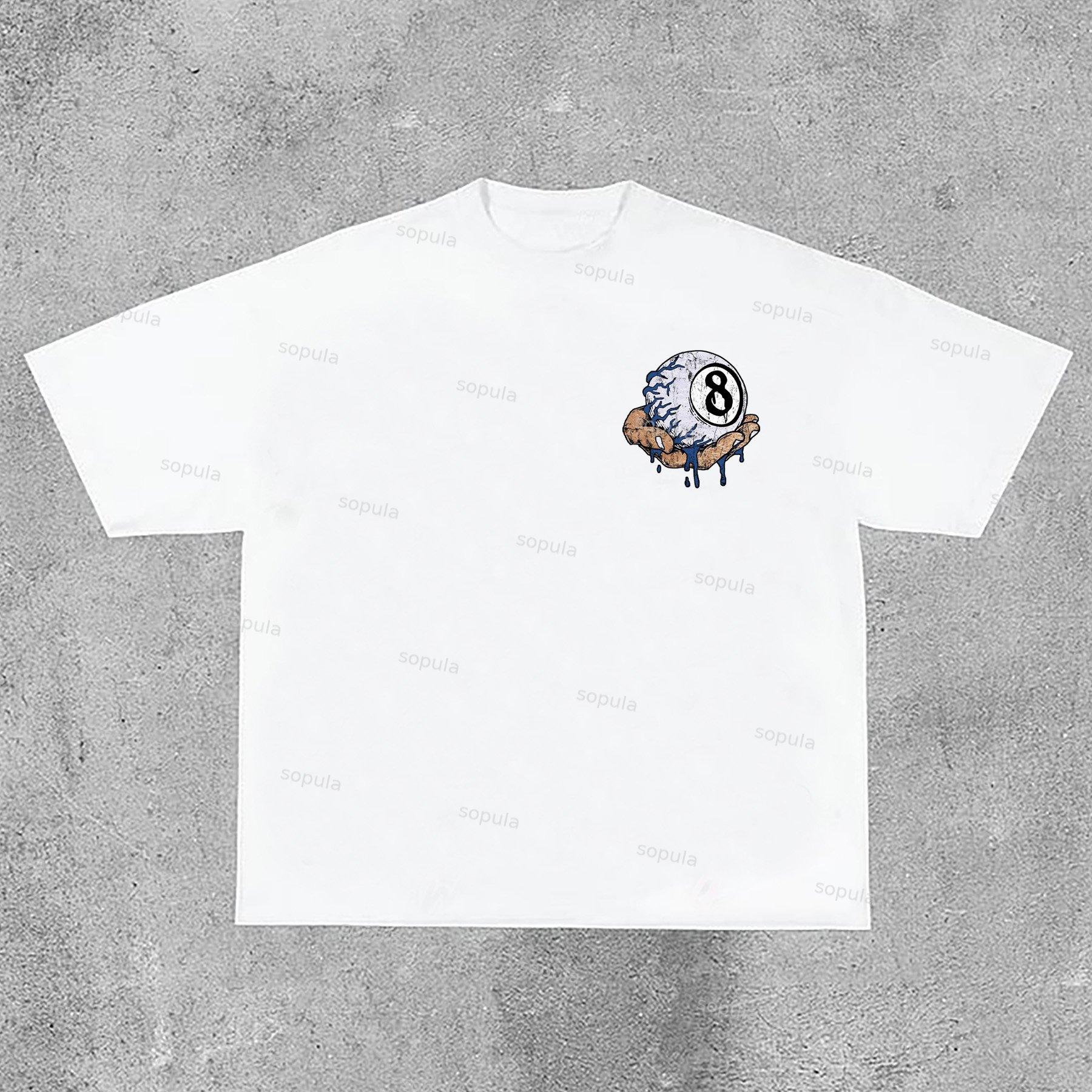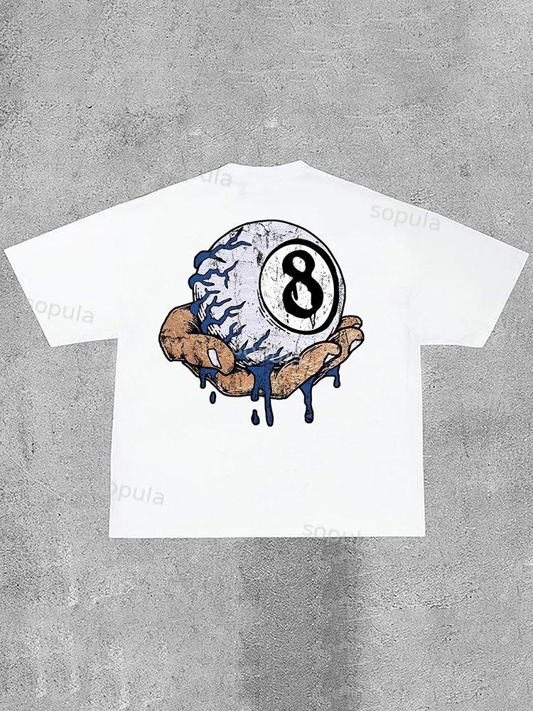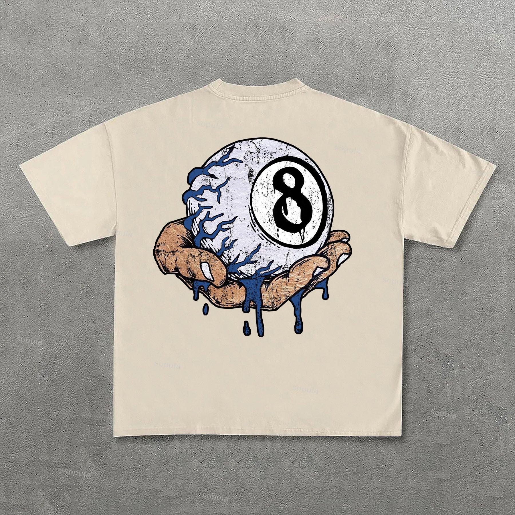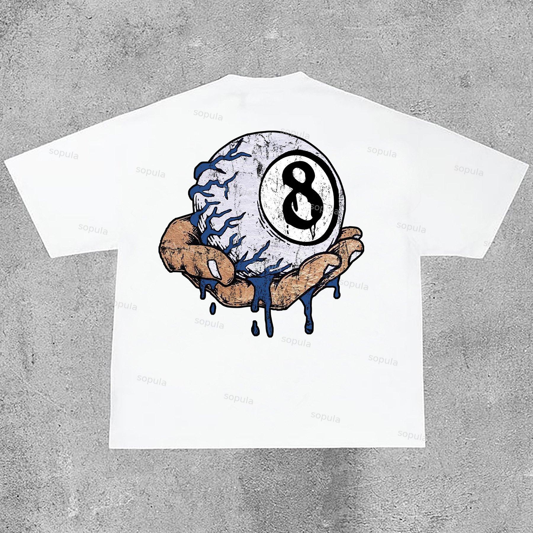 Hand Holding 8 Ball Fun Retro Print Cotton T-Shirt. SPU: DZ-140412-WCX Fabric Name: 100% Cotton Pattern: Hand Holding 8 Ball Print Process: Printed Style: Casual Length: Regular Collar: Round Neck Popular Elements: Print Sleeve Type: Short Sleeve Occasion: Street, Daily Theme: Summer