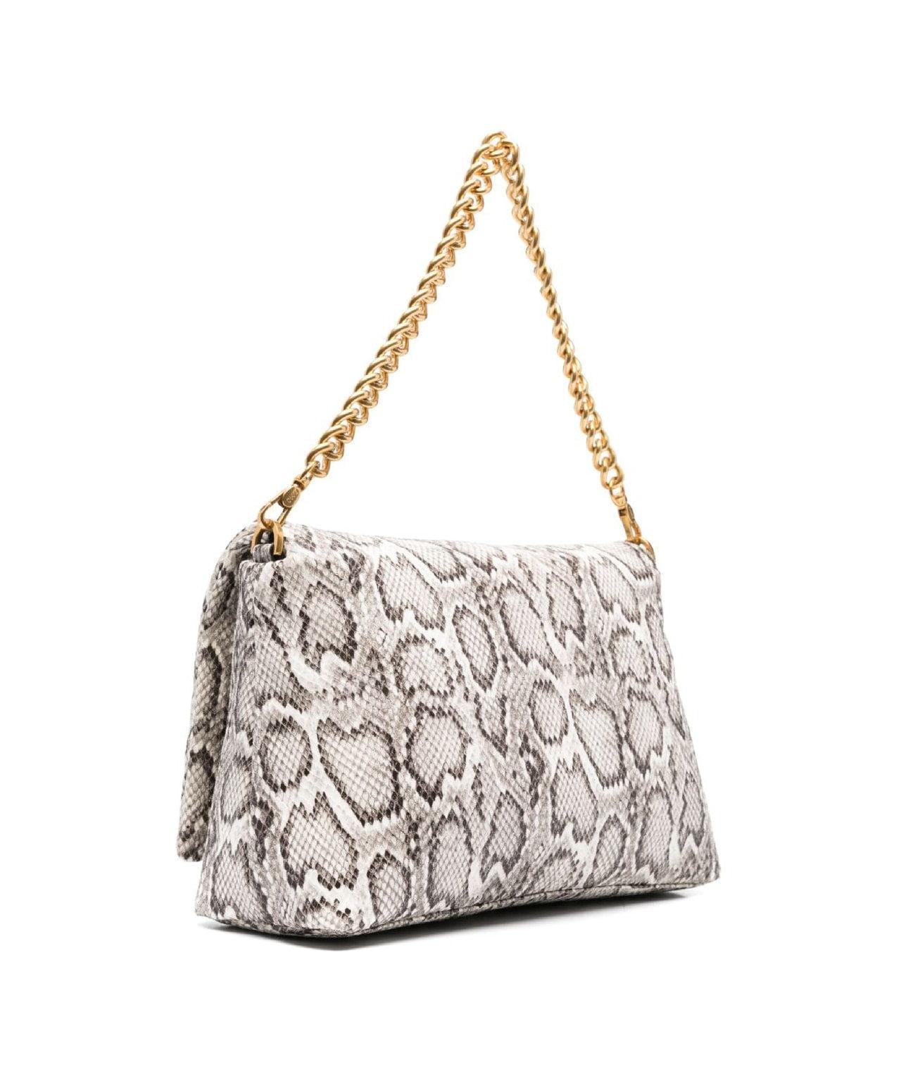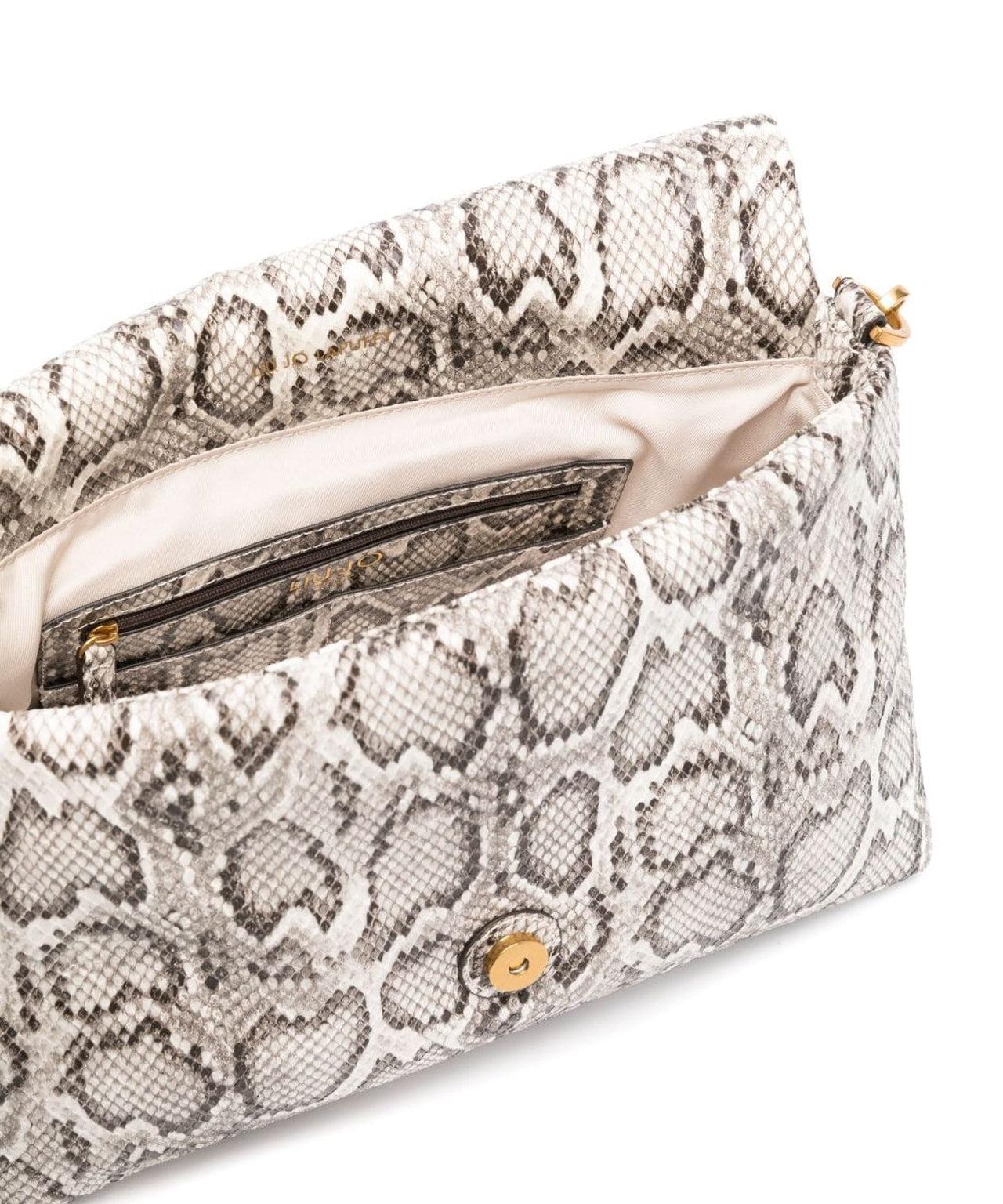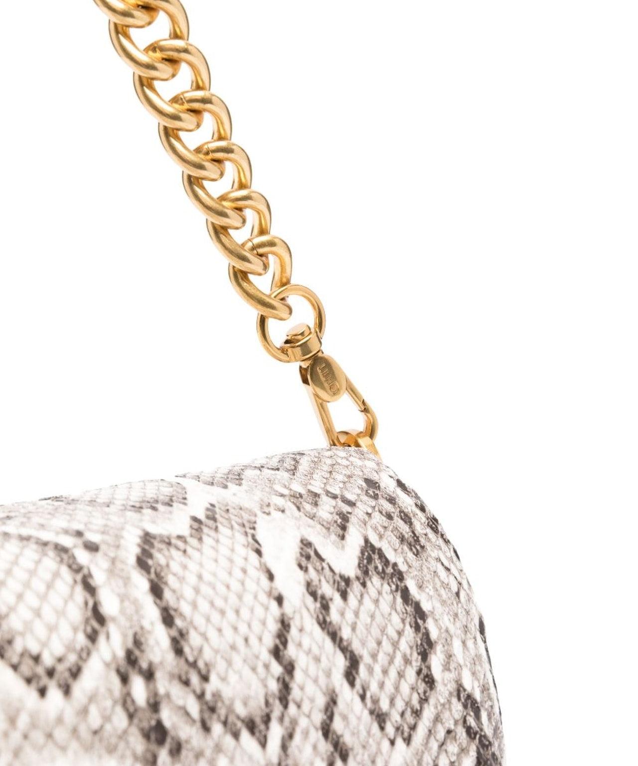 Logo detailsRemovable and adjustable shoulder strapRemovable chain shoudler strapOne zip pocket insideSlit pockets insideOne inner compartmentPress button closureGolden coloured metallic detailsFaux leatherEffetto pitonatoLogo pendant