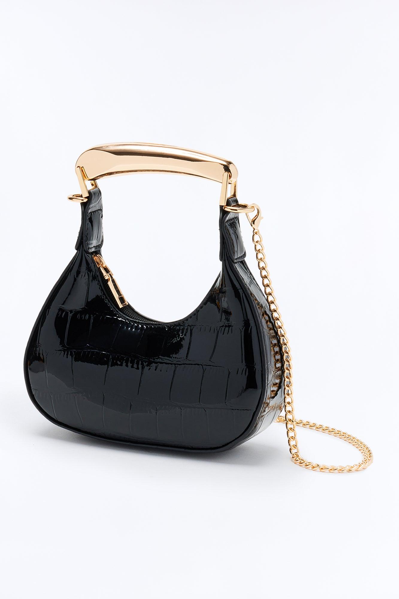 Available In Black. Mini Satchel Bag Faux Leather Material Top Zip Closure Embossed Crock Pattern Hardware Handle Detail Dimensions: 7"2"4 Imported California Proposition 65WARNING: Cancer and Reproductive Harm - www.P65Warnings.ca.gov.