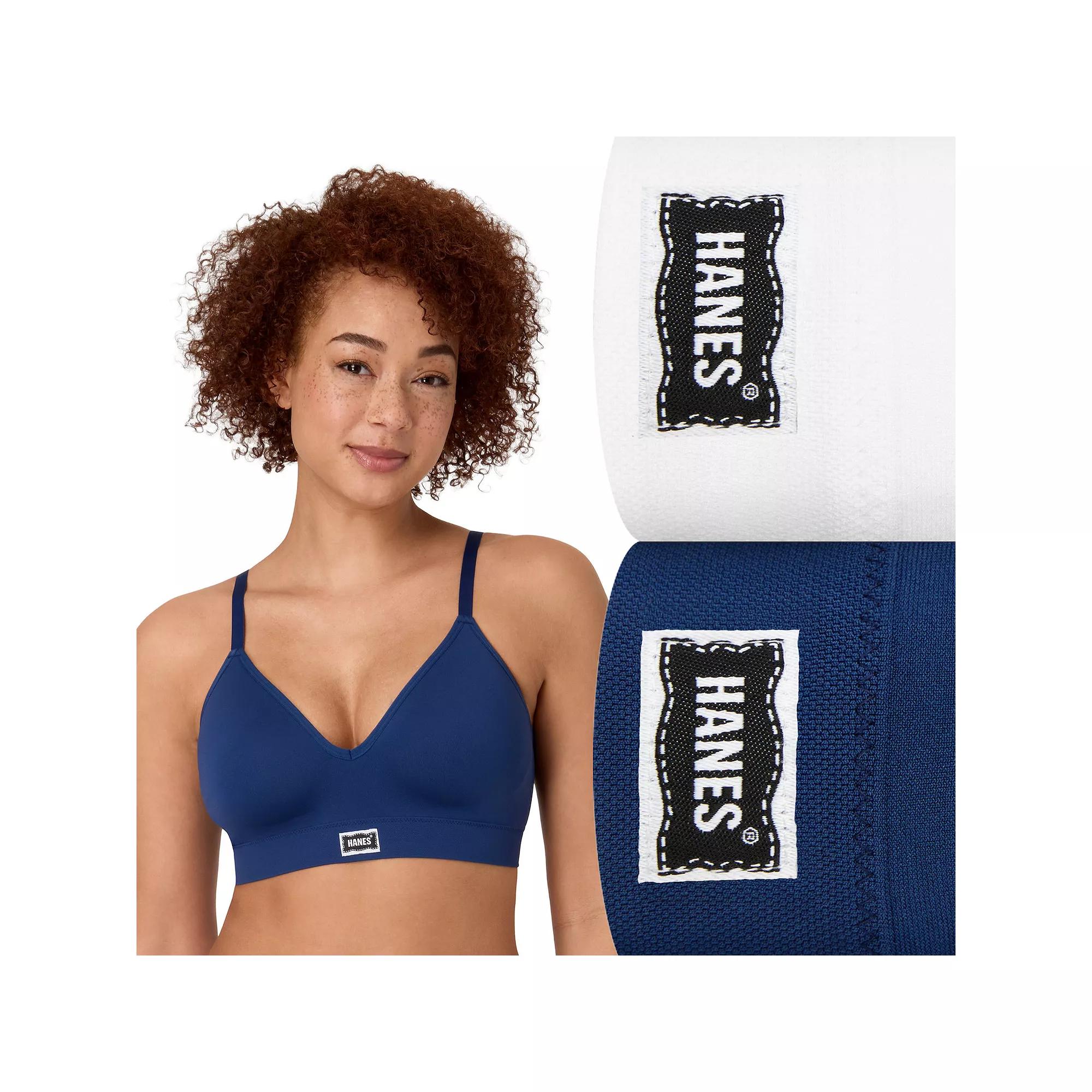 Discover the perfect blend of vintage charm and modern comfort with Hanes' stylish wireless contour bra. Designed for all-day wear, this breathable piece features adjustable no-slip straps and extended underarm coverage for a personalized fit, making it an essential addition to your wardrobe. Click on this INTIMATES & SLEEPWEAR GUIDE to find the perfect fit and more! - https://www.kohls.com/feature/womens-sleepwear-and-intimates-guide.jsp. FEATURES: Includes: 2 bras, This breathable, wirefree style offers reliable support with extended underarm coverage, The U-back and adjustable no-slip straps ensure a personalized fit, Tagless® design and soft comfort band - complete with a retro center-front Hanes logo - add thoughtful finishing touches, An ultimate collection of fresh, modern essentials designed for comfort with our finest luxe fabrics and coolest crafted details, made for every body. FIT & SIZING: Adjustable straps. FABRIC & CARE: Cotton, spandex, Machine wash delicate and tumble dry low, Imported. Size: Xxl. Color: Navy Eclipse White. Gender: female. Age Group: adult. Material: NYLON BLEND.