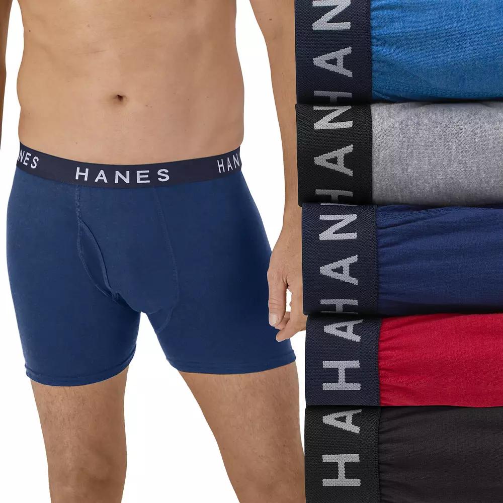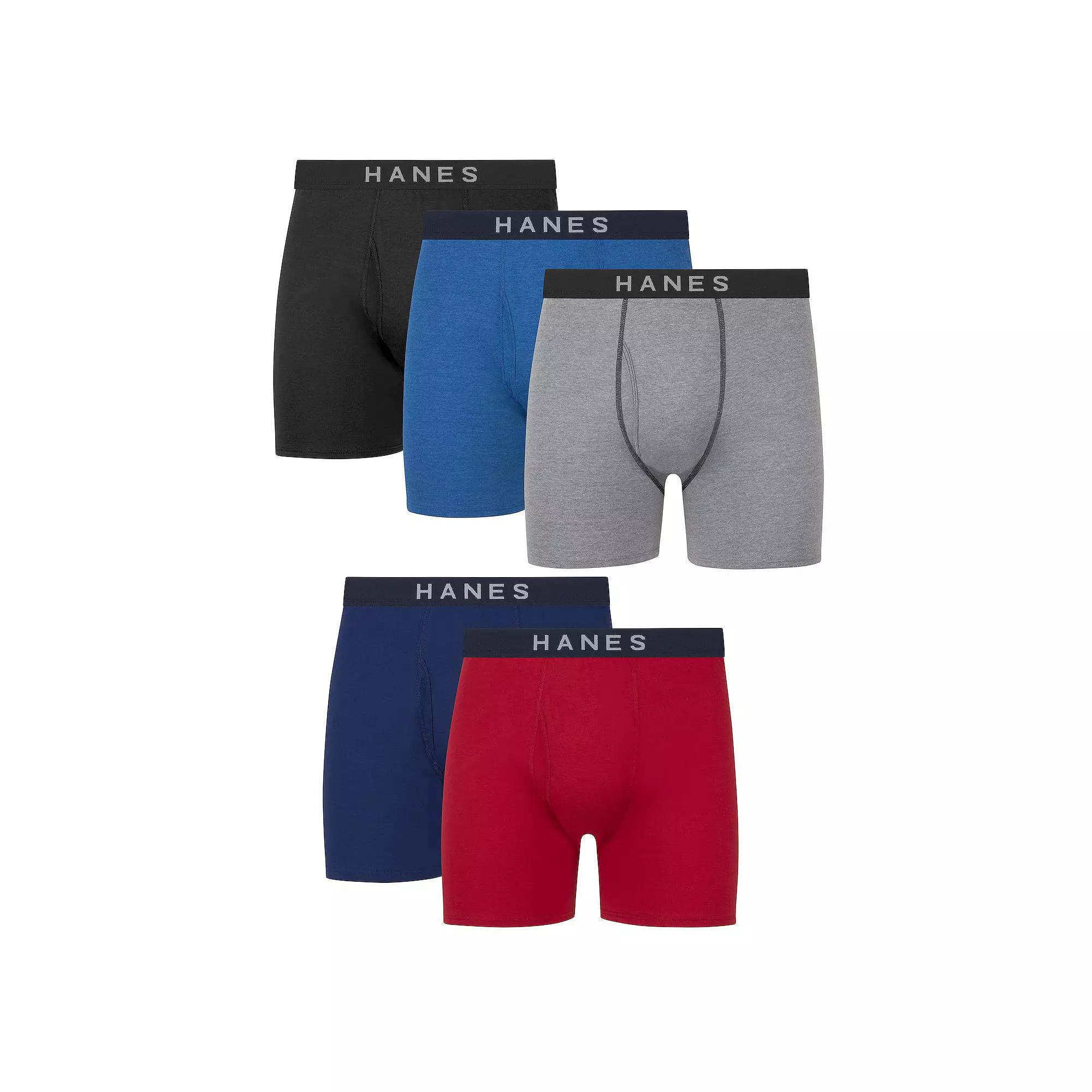 Refresh his essentials with these mens ComfortBlend Fresh IQ Boxer Briefs from Hanes. Refresh his essentials with these mens ComfortBlend Fresh IQ Boxer Briefs from Hanes. FEATURES 4 pairs + 1 bonus pair Moisture-wicking fabric keeps you dry and comfortableFresh IQ advanced odor protection technology No ride-up design Tagless Fly frontFIT & SIZING Elastic waistband Regular fitFABRIC & CARE Cotton, polyester Machine wash Imported Size: XL. Color: Blue Red. Gender: male. Age Group: adult.