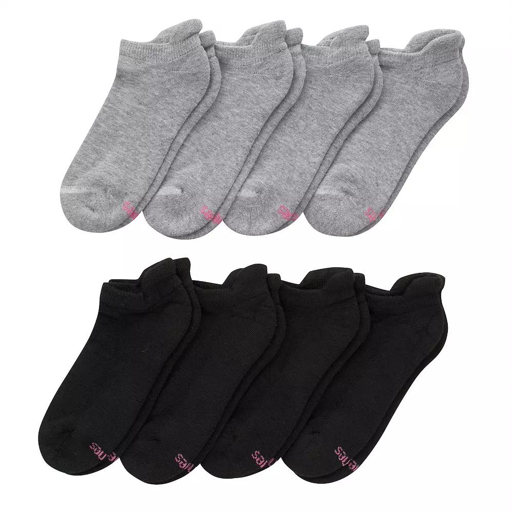 Step into ultimate comfort with these cushioned heel shield Hanes socks. Step into ultimate comfort with these cushioned heel shield Hanes socks. FEATURES Includes 8 pairs of socks Comfortable toe seam provides a smooth, virtually seamless fit X-Temp technology automatically adjusts cooling & moisture control Performance fit Heel shield One size fits most Style: HWUCH8FABRIC & CARE Polyester, spandex, nylon Machine wash Cooling Size: 9-11. Color: Black Gray. Gender: female. Age Group: adult.