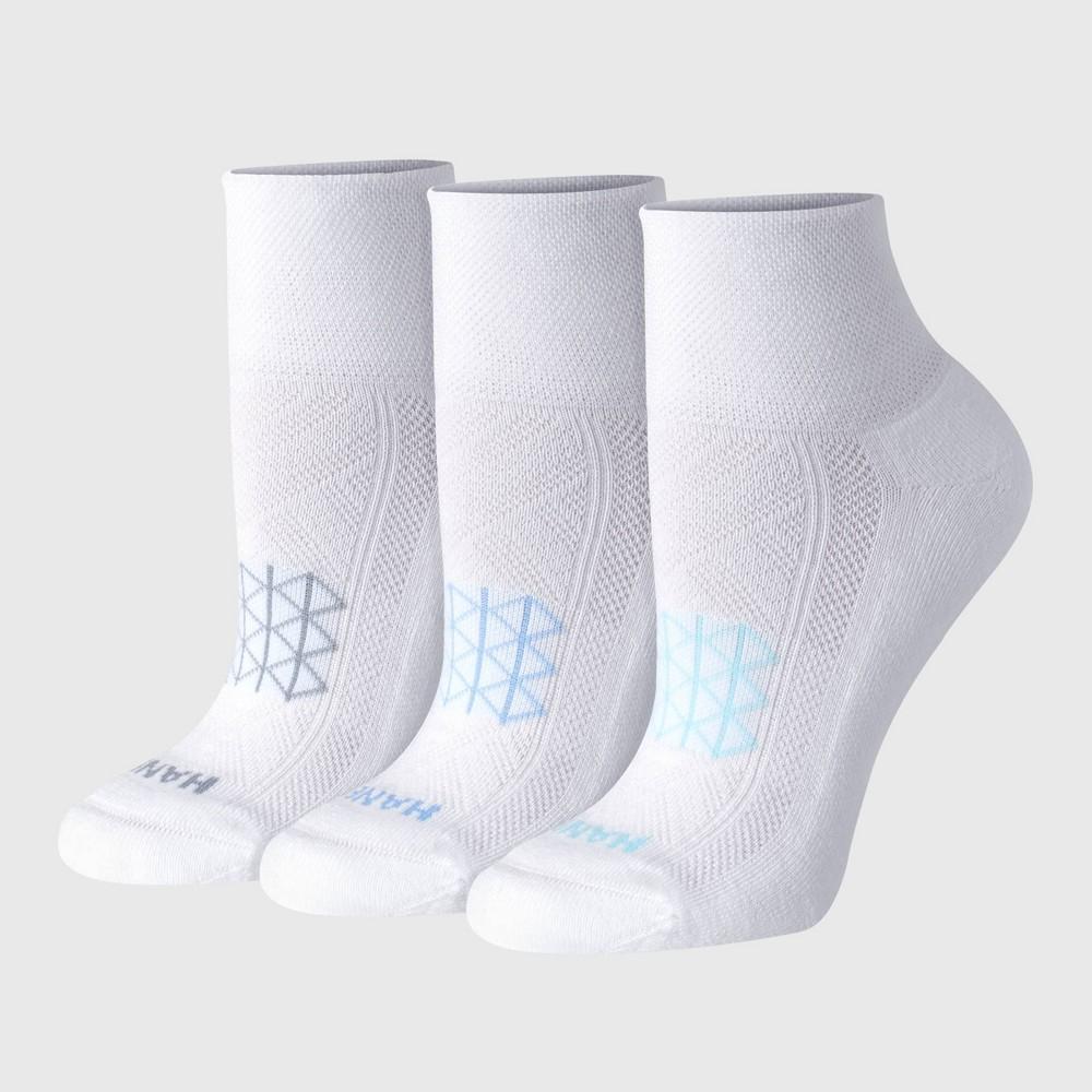 Hanes Absolute Run Womens Ankle Socks, 3-Pairs SOCKS PERFECTED Built for the serious runner but so comfy you wont want to take them off, Hanes Absolute Run womens ankle socks are engineered for performance. Crafted from our best spun polyester blend, these exceptional womens socks have a dense heel-to-toe cushion that helps absorb shock. A seamless toe is designed to reduce irritation while an arch support system delivers a snug fit. Youll appreciate the breathable mesh panel on the top of the foot and wicking fabric that helps keep your feet cool and dry. Hitting just above the ankle, quarter socks disappear beneath most shoes. The best part? This three-pack of running socks offers unbeatable quality at an impressive price point. Hanes Absolute. Because your comfort shouldnt compromise your budget.