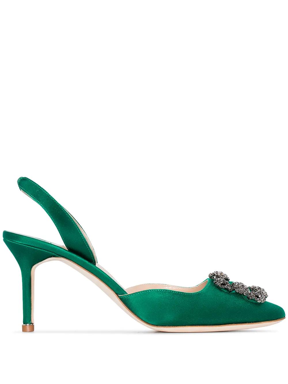 Kick back in some slingbacks. These emerald-green satin Hangisi 70mm slingback pumps from Manolo Blahnik, to be precise. Just slip on and strut off.