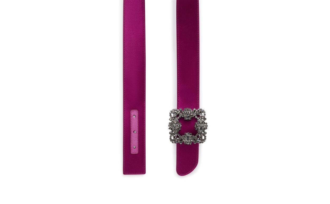 HANGISI BELT Dark Fuchsia Satin Crystal Buckled Belt
