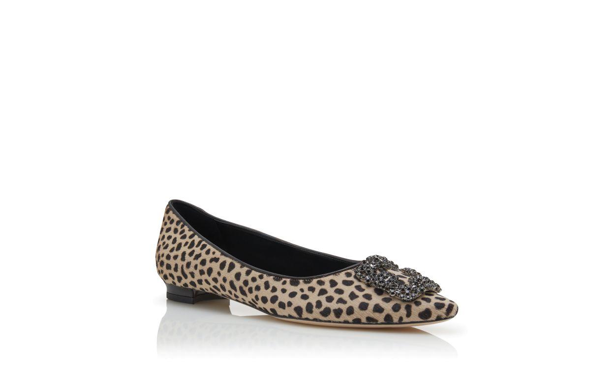 HANGISIFLAT Animal Print Calf Hair Jewel Buckle Flat Pumps
