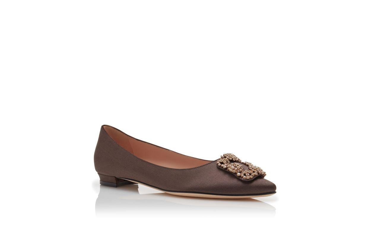 HANGISIFLAT Brown Satin Jewel Buckle Flat Pumps