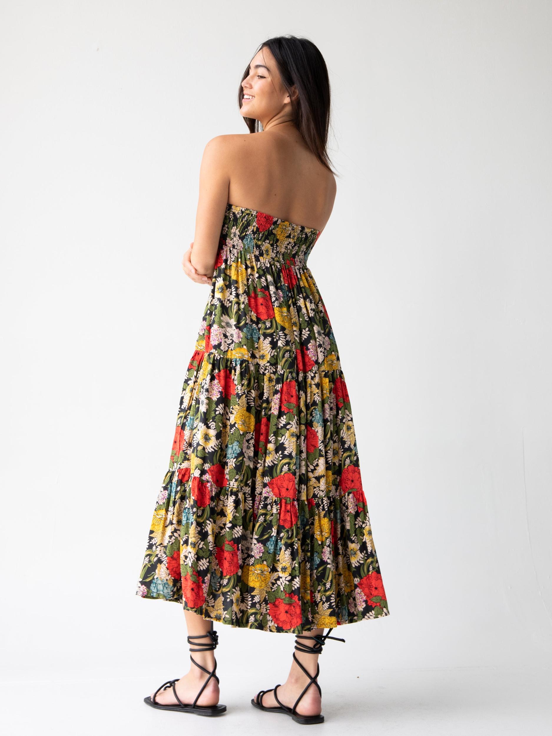 Hanna Convertible Maxi Skirt - Black Red Poppy