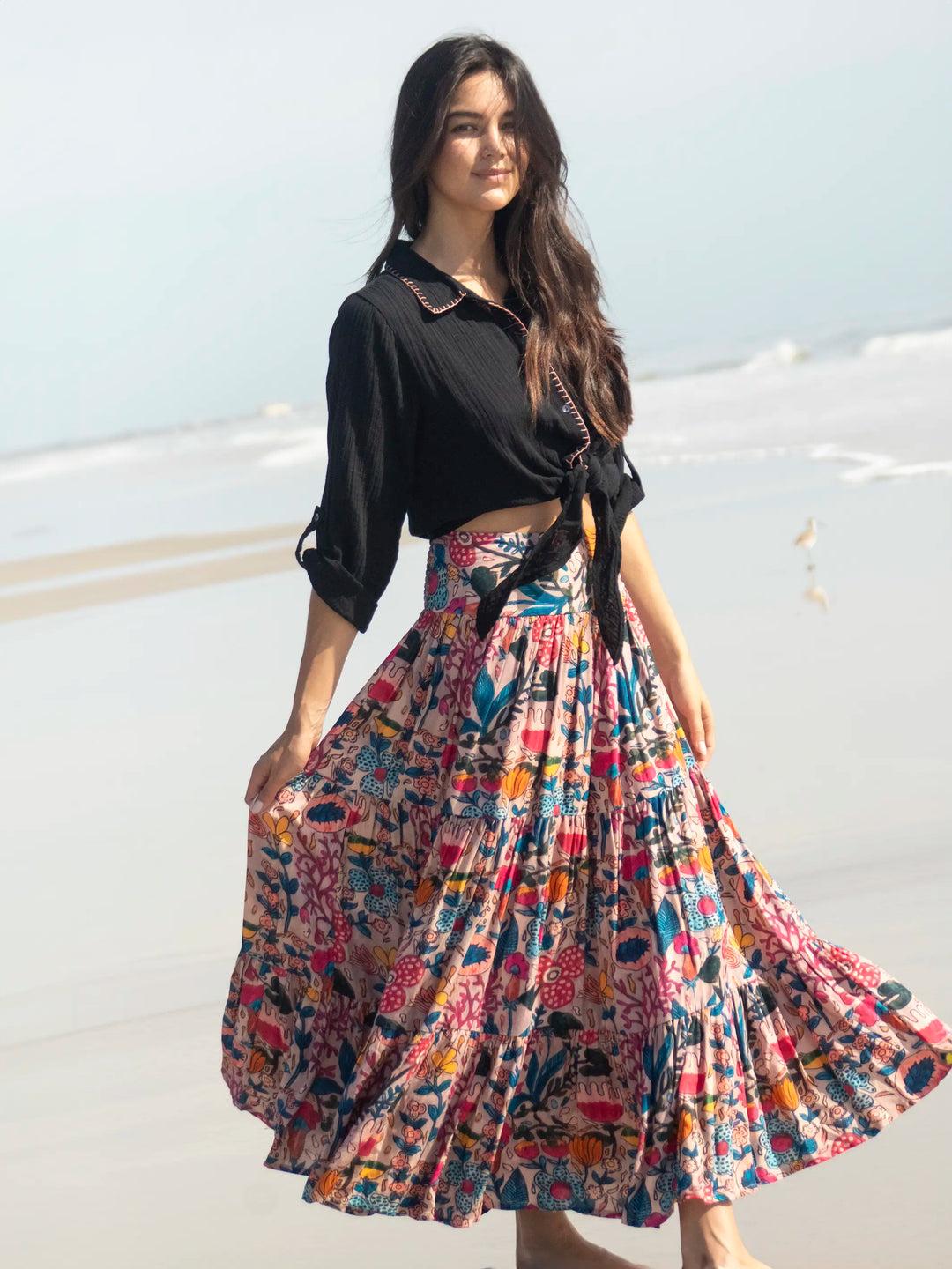 Hanna Convertible Maxi Skirt - Black Red Poppy