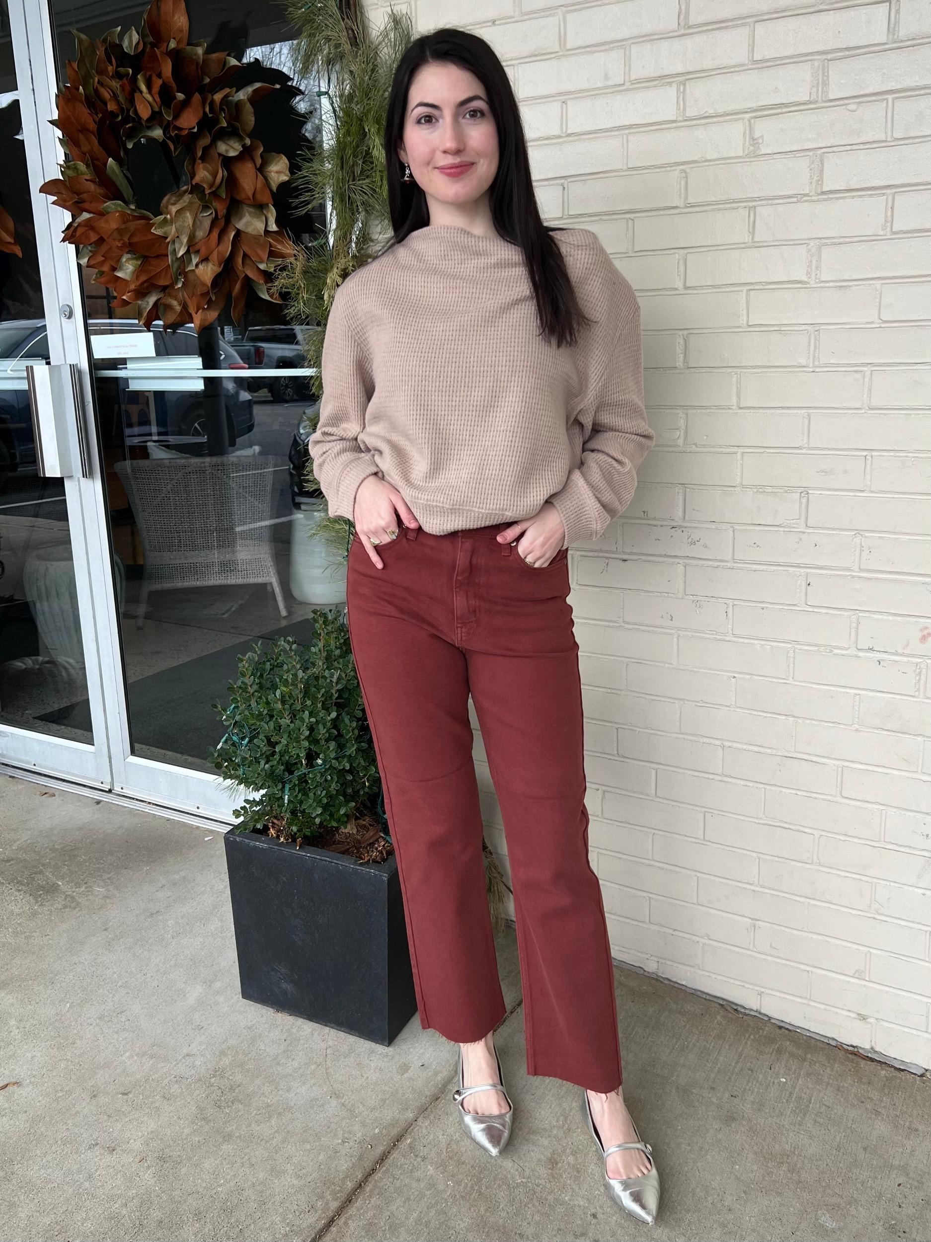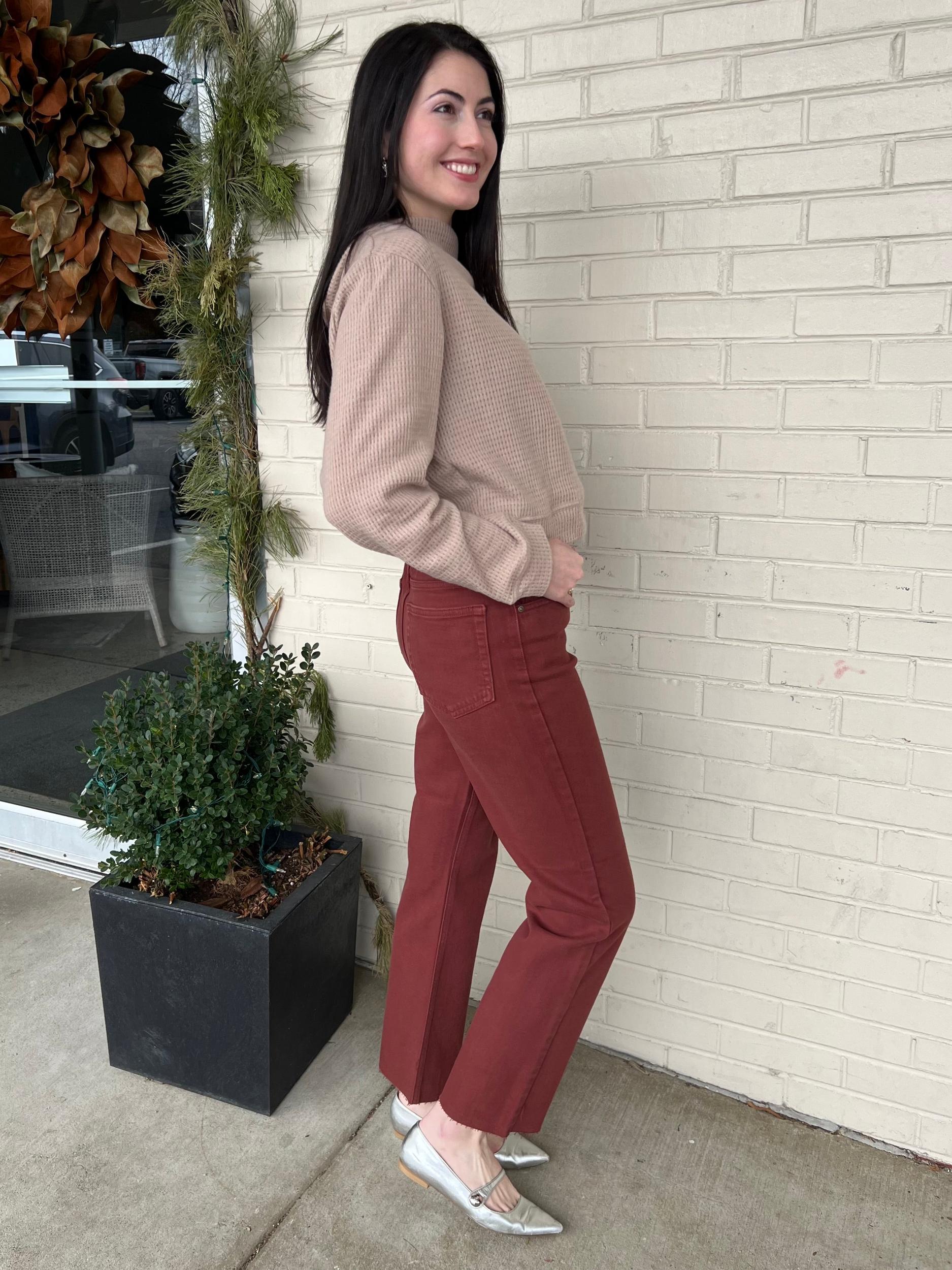 Get ready to slay in our Hannah Crop Straight Jeans! With a relaxed straight fit and ankle crop in a bold burgundy color, these jeans will elevate any outfit. Whether you're going out or staying in, these jeans are the perfect choice for a stylish and comfortable look.