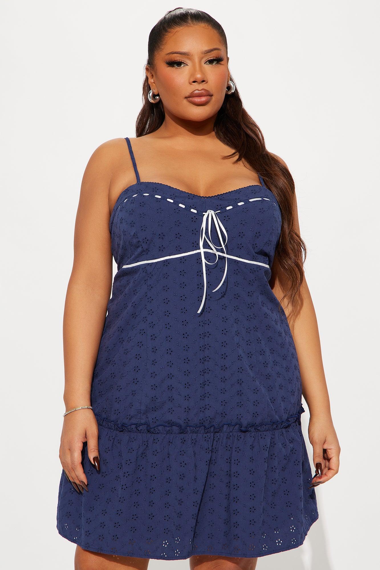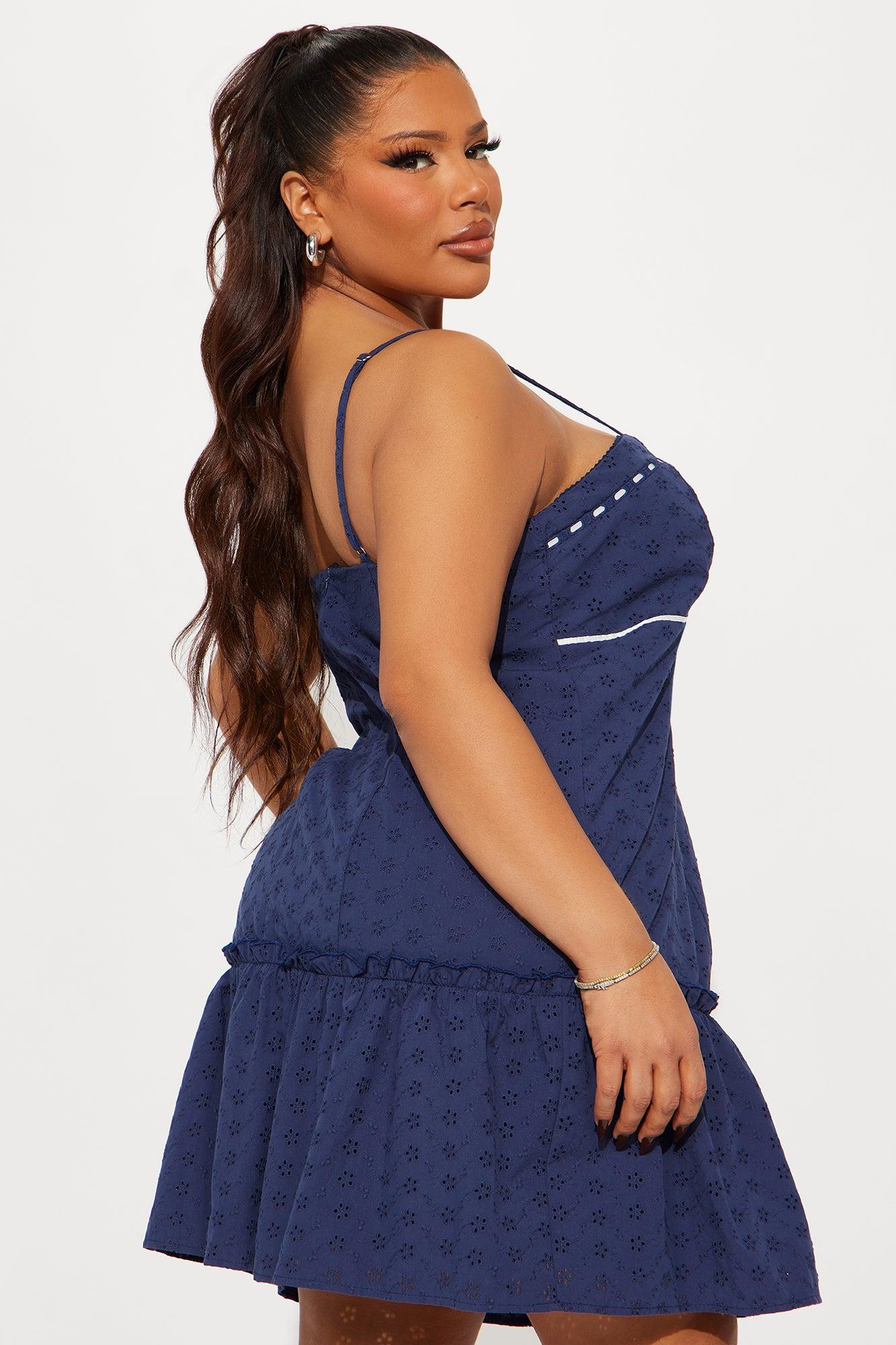 Hannah Eyelet Mini Dress - Navy