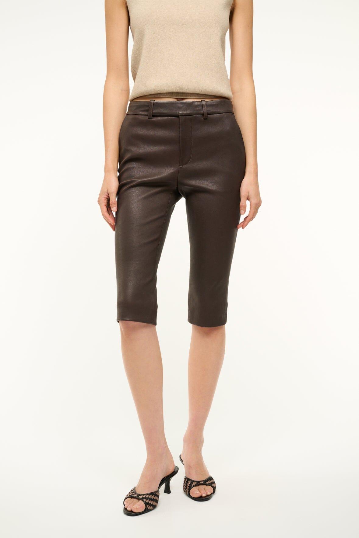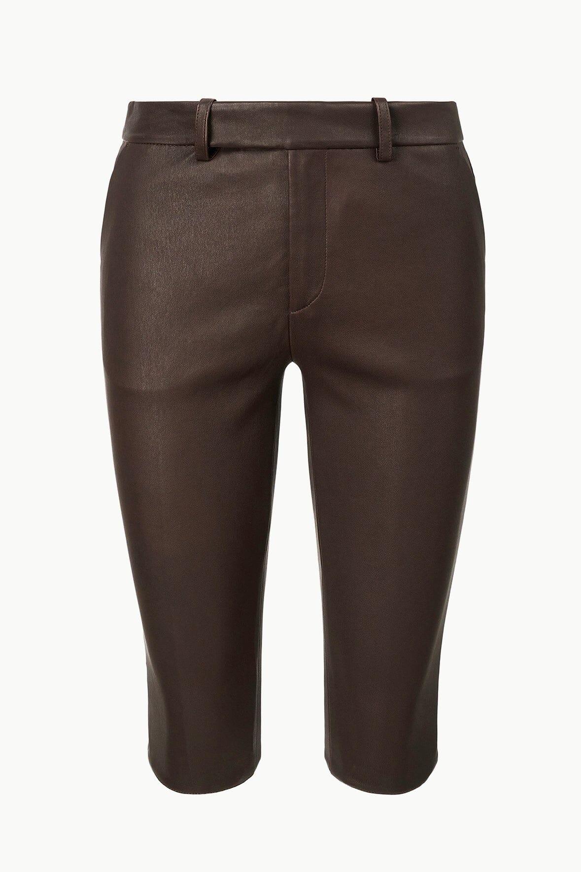 The Hanover Leather Capri is our new mid-rise stretch leather capri pants crafted in supple stretch leather. This style has a zipper fly, waistband, belt loops, and a back pocket.