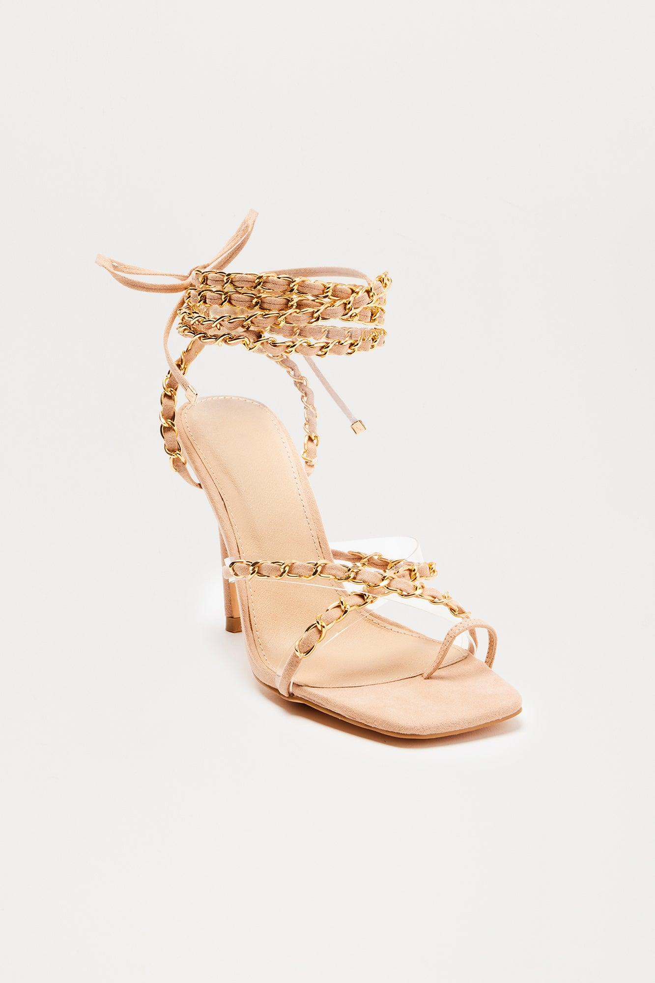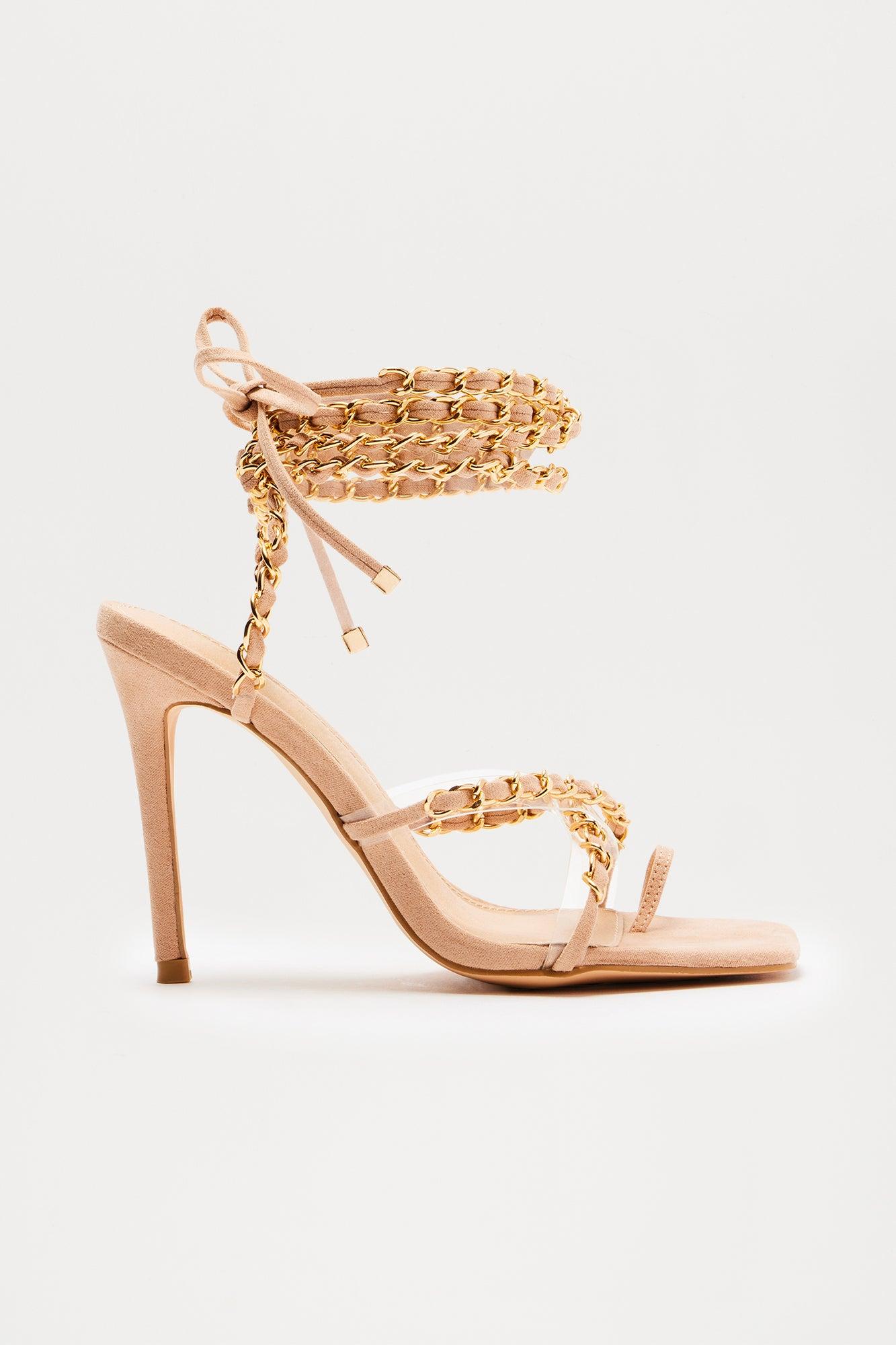 Sarajane Rhinestone Wrap Up Heels - Natural/Combo