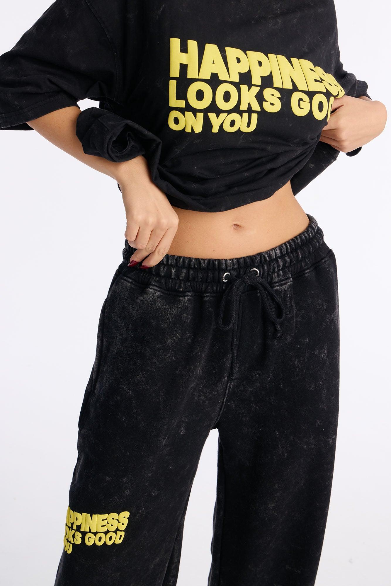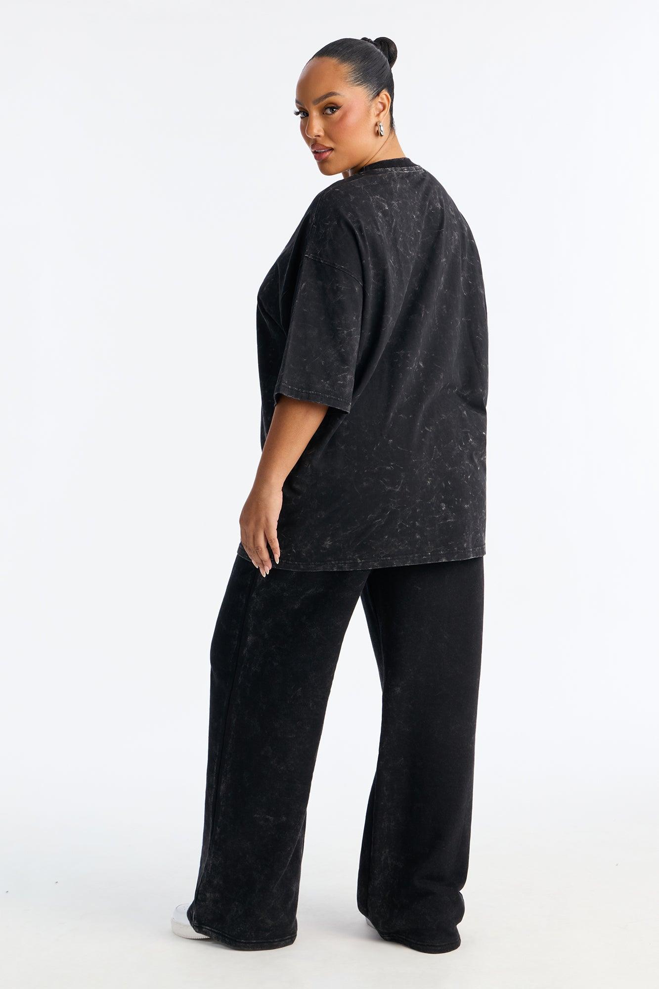 Available In Black. 2 Piece Ensemble T-Shirt And Wide Leg Pant Set Stretch Inseam 31" Drawstring Elastic Waistband Pockets Disclaimer: Due To The Specialized Wash Process, Each Garment Is Unique. Top: 95% Cotton 5% Elastane Pants: 60% Cotton 40% Polyester Imported