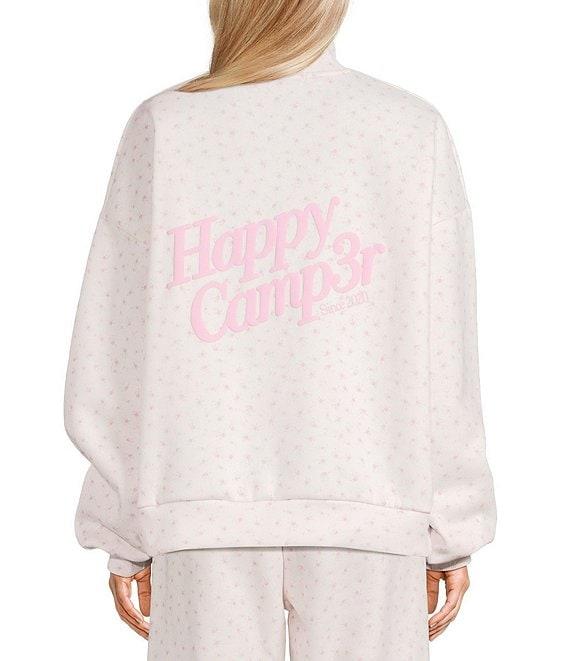 From Happy Camp3r, this sweatshirt features: Allover print Mock neck Long sleeves Small graphic Pullover styling Cotton/polyester Machine wash delicate/line dry Imported.