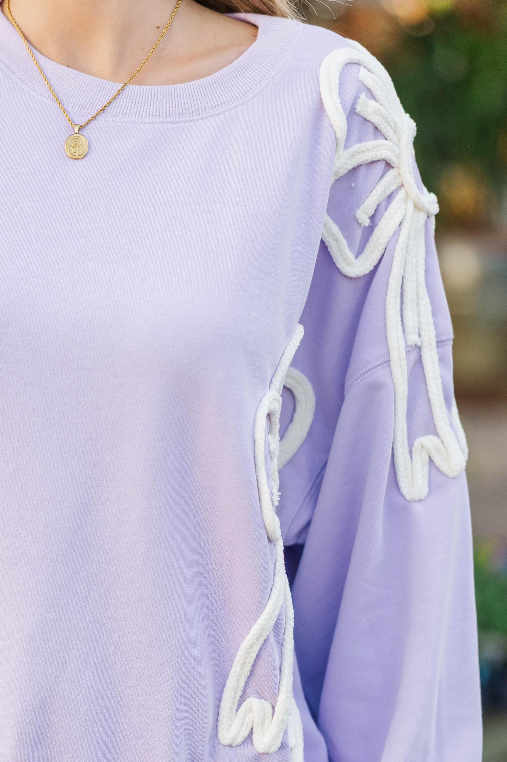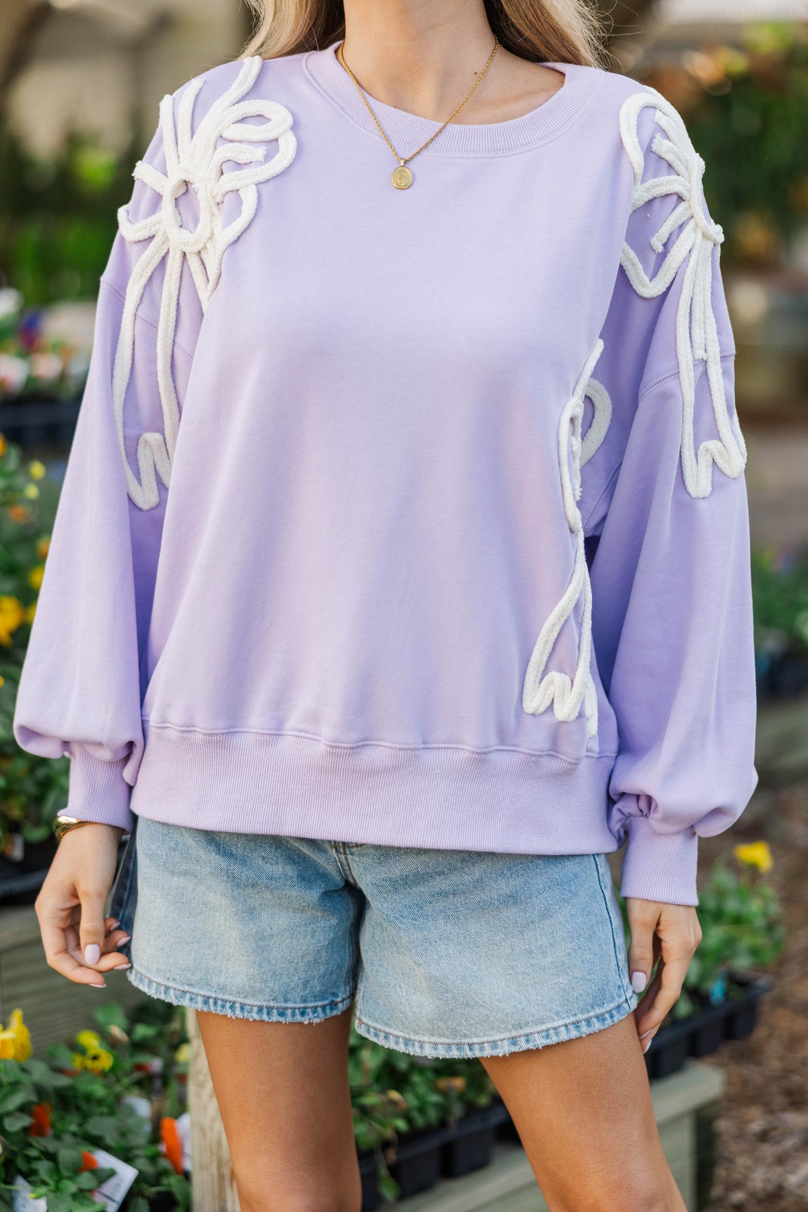 This cozy sweatshirt gets a playful upgrade with its statement bow details along the sleeves. Soft and easy to wear, it’s perfect for casual days when you still want something fun and feminine. Pair it with denim, joggers, or skirts for an effortlessly cute look. Classic round neckline Long sleeves with bow detail Relaxed fit with ribbed cuffs and hem Soft sweatshirt fabric Moderate stretch London is wearing the small.