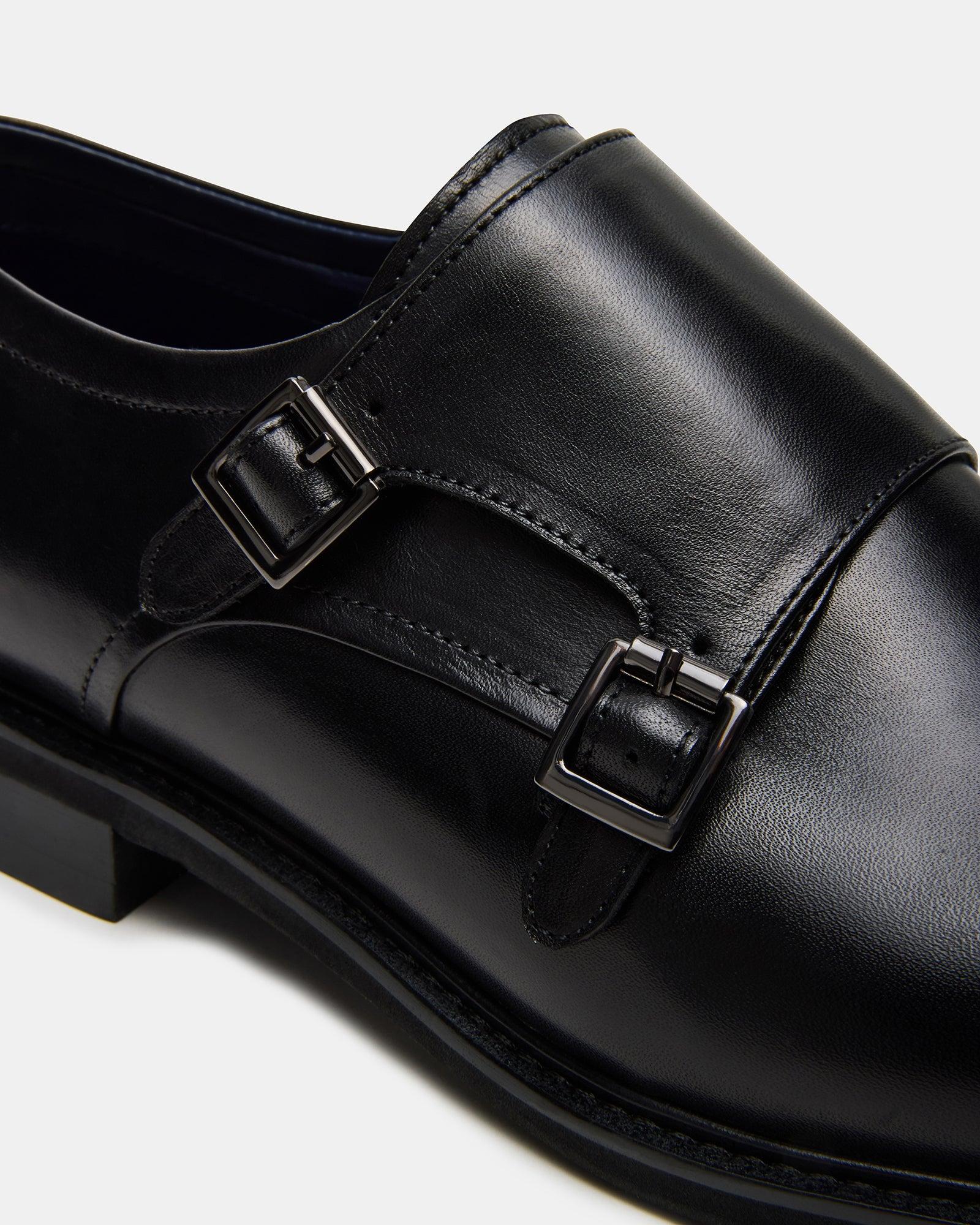 These HARAN dress shoes with buckles provide a sleek and polished look for any formal event. Made with high-quality materials, they offer durability and style. With their unique buckle design, they add an extra touch of sophistication to your outfit. Elevate your shoe game with this unique dress shoe. 1 inch heel height Leather upper material Textile lining Textile sock Rubber sole Imported