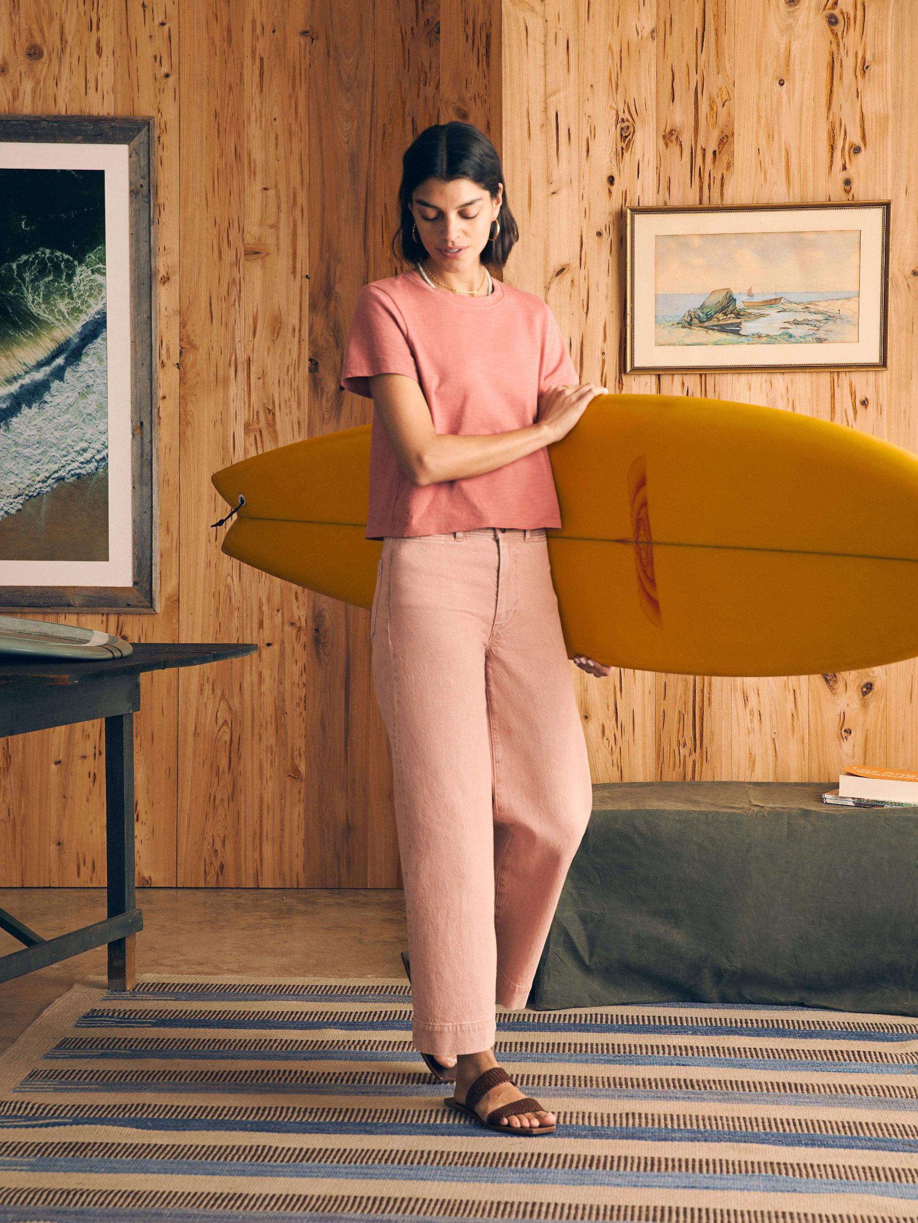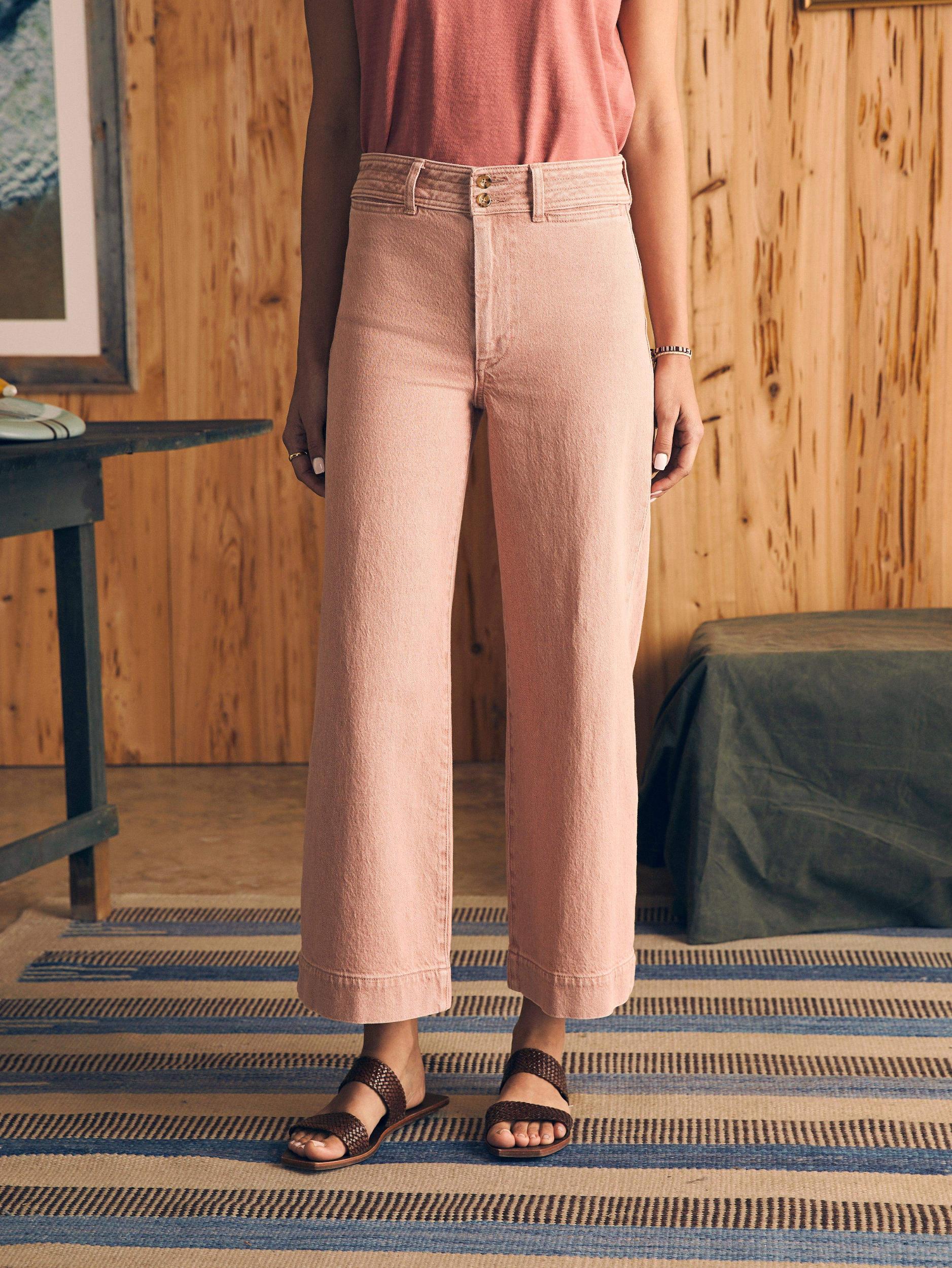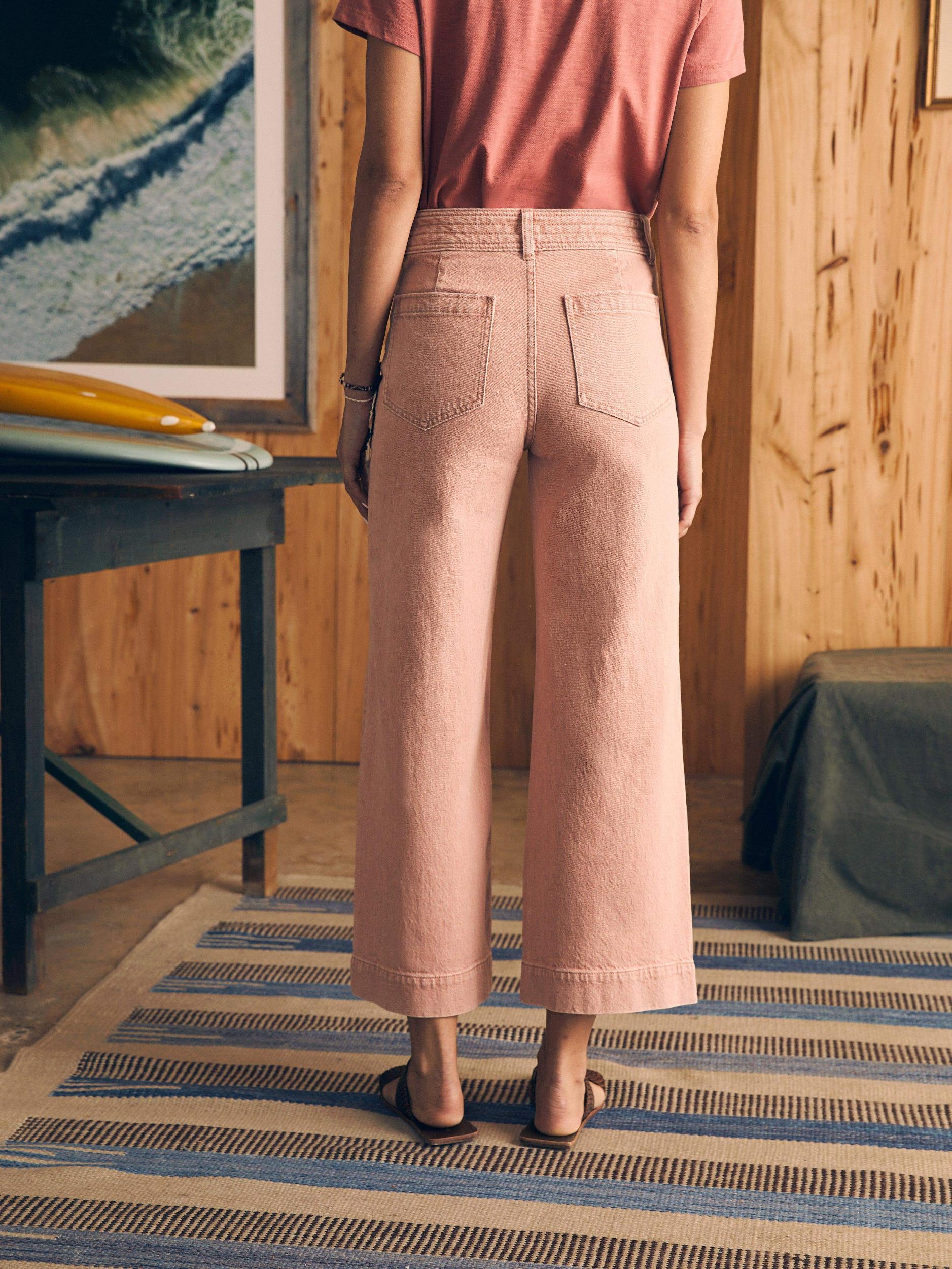 Our new Harbor Crop silhouette features a high rise and wide leg that hits at the ankle for a polished and playful look. The light wash of color – just in time for spring – is created using natural botanical dyes, so that each jean has its own one-of-a-kind character. Fit: High rise wide leg, ankle length. Inseam:27" Detail: Color yarn dyed Denim pant. Tall waistband with decorative stitching with button closure. On-seam pockets. Comfort stretch. Denim fabric is dyed using Natural based dye, derived from the non-edible waste of beetroots leftover from agricultural and herbal industries. Each garment may have slight color variations and will continue to fade, adding to its character and uniqueness. Material: 88% Cotton, 11% Recycled Cotton, 1% Elastane, Poly Button, Metal zipper Model: Bianca is 5'10 wearing size 27" Care: Close all zippers before wash. Turn inside out. Machine Wash cold With like colors. Delicate cycle. Do not bleach. Tumble dry low. Remove promptly. Warm iron when needed. WBS2432-YIW