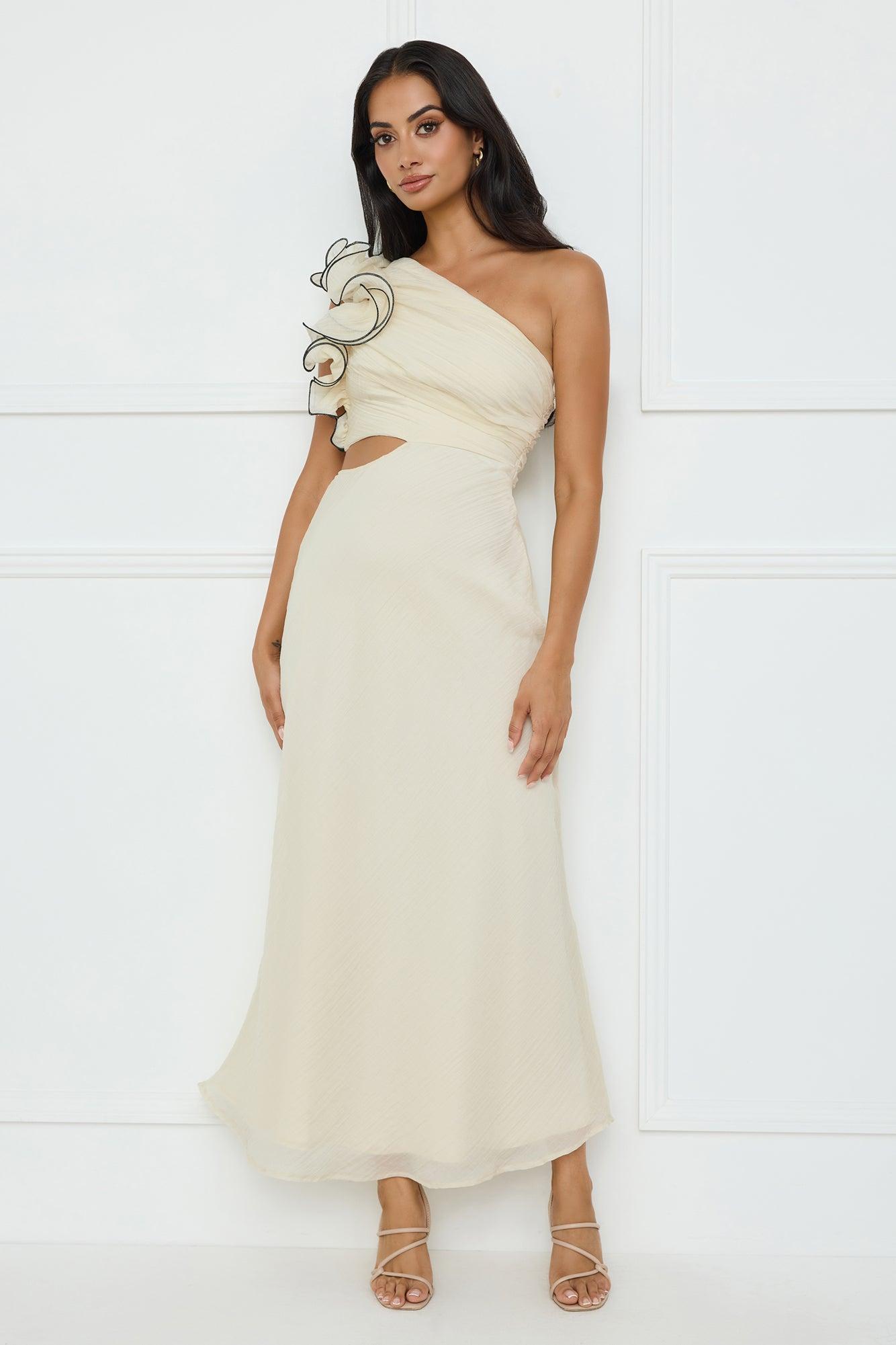 Harbour Dreams One Shoulder Maxi Dress Cream